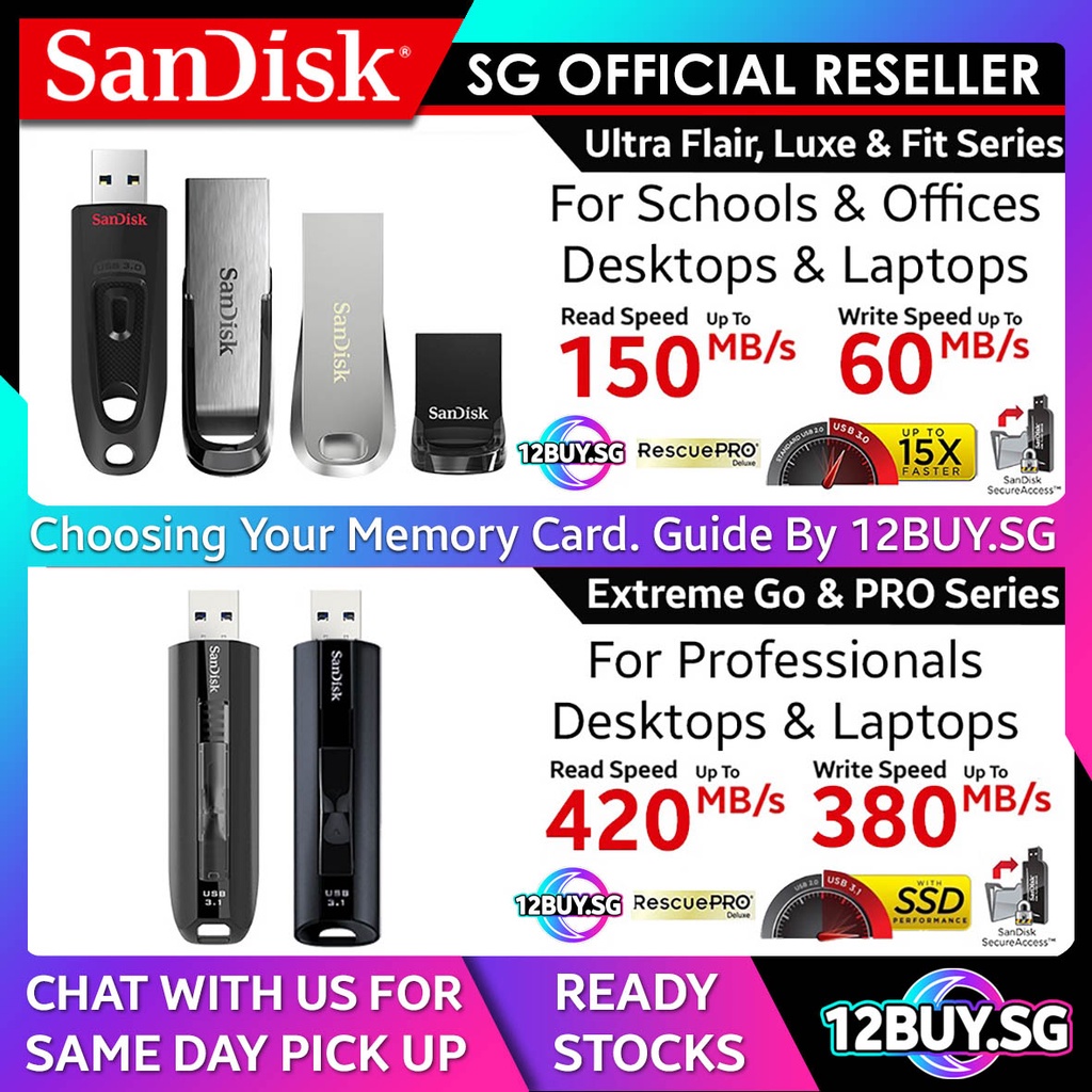 Sandisk Ultra Flair USB 3.0 Thumb Drive Flash Drive Pen Drive 150MB/s 16GB 32GB 64GB 128GB CZ73 12BUY.SG