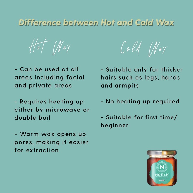 Hot Wax is suitable for ALL areas, such as facial, arms, legs, underarms and private areas. It requires heating up before use. It is almost pain-free as warm wax opens up pores, making extraction easier. It is also best for experienced users.