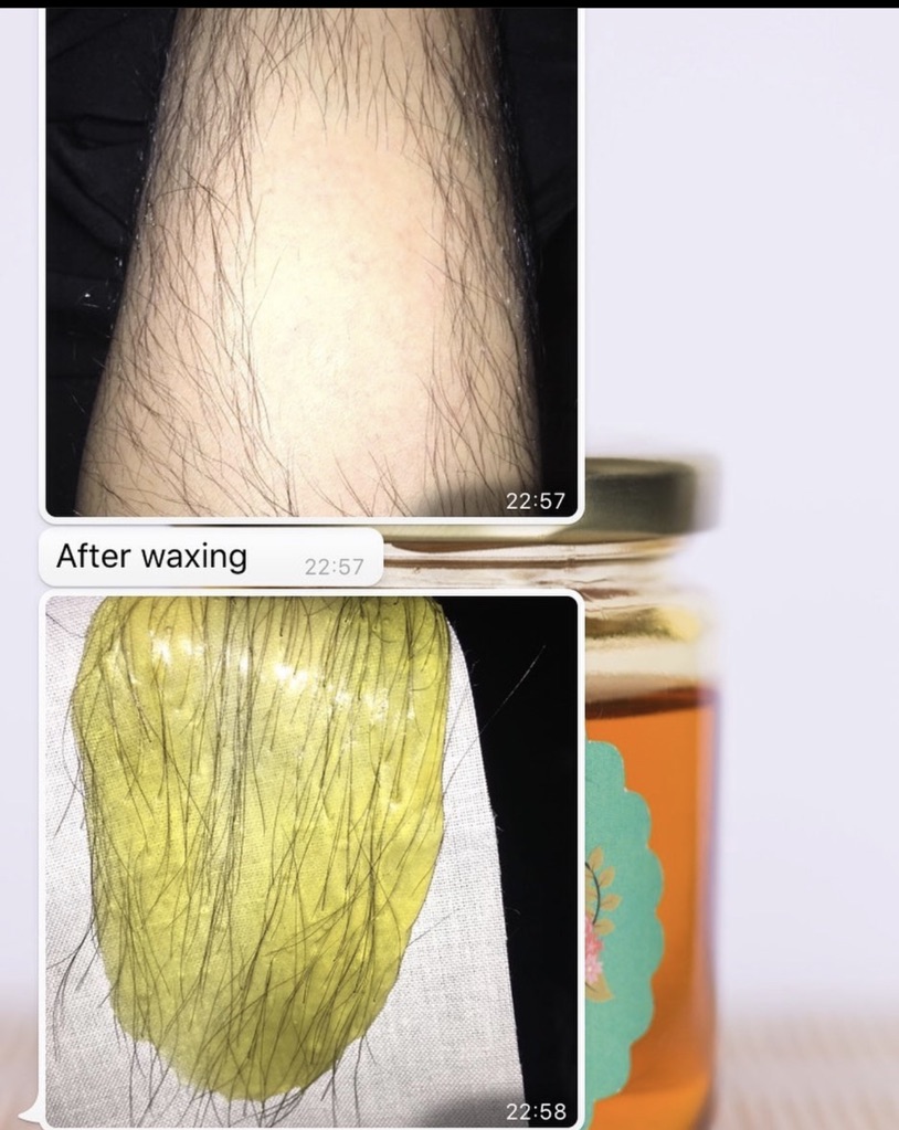 3. Once the unwanted hairs & honey from the strips & sticks start to come off, rinse them under normal running water to remove the balance residue