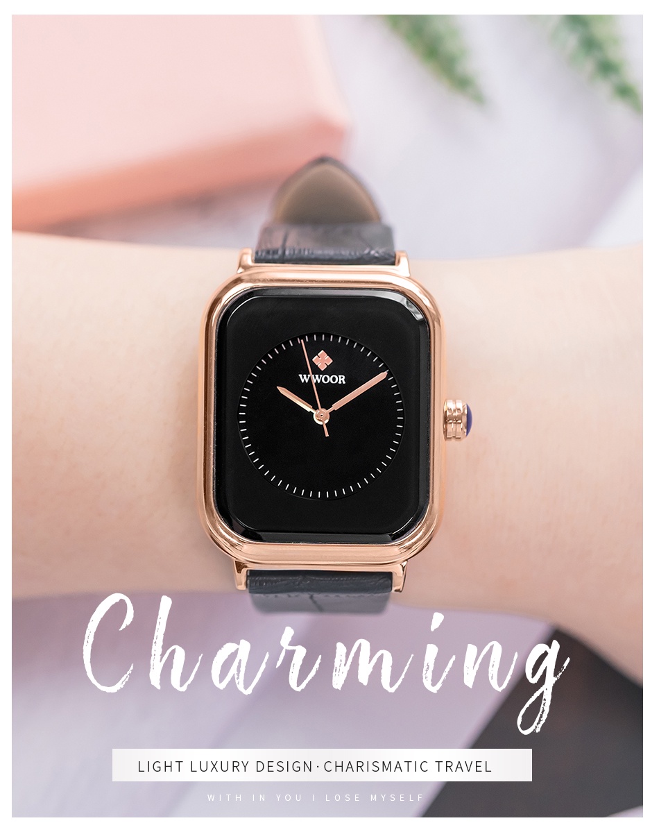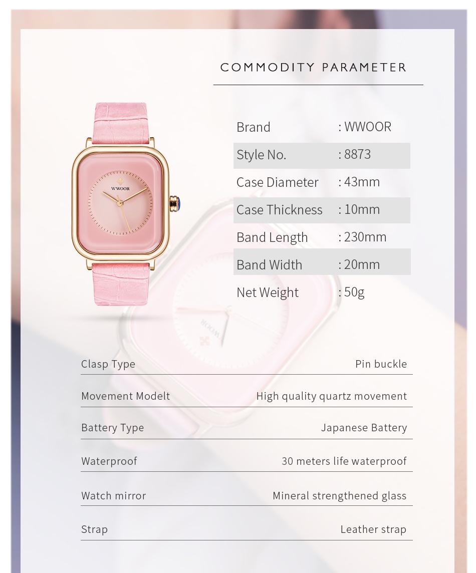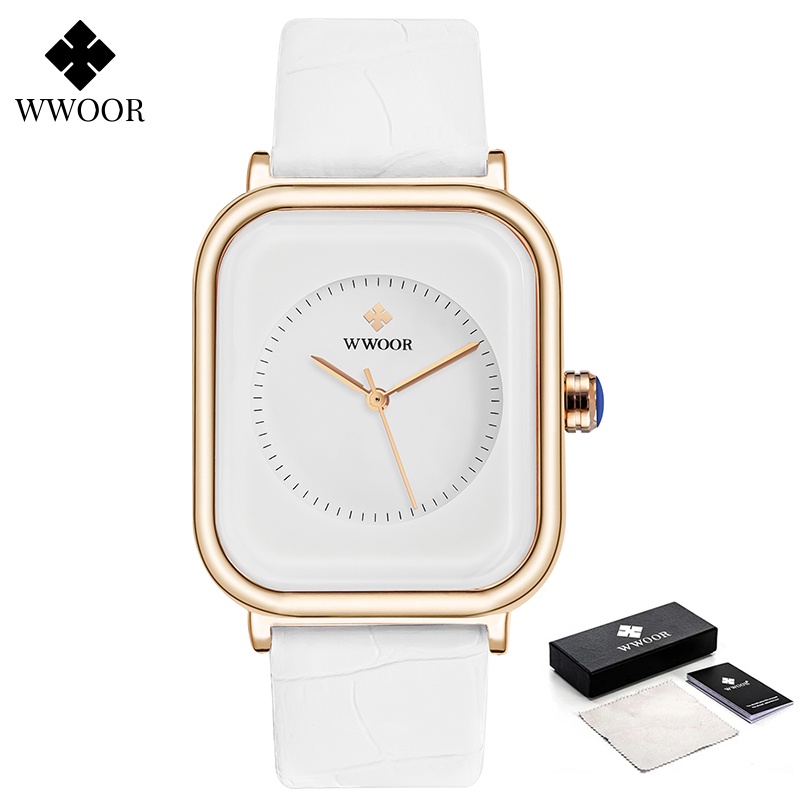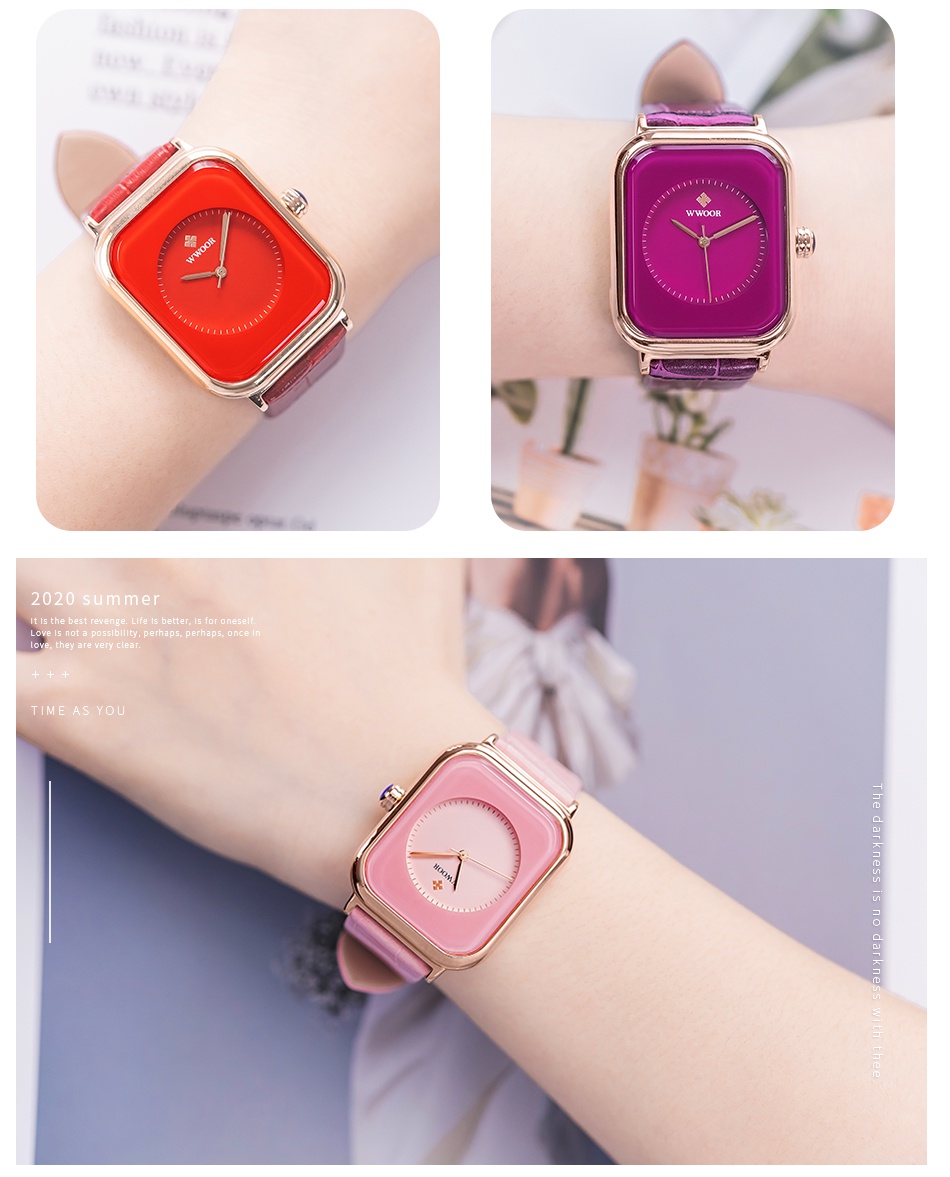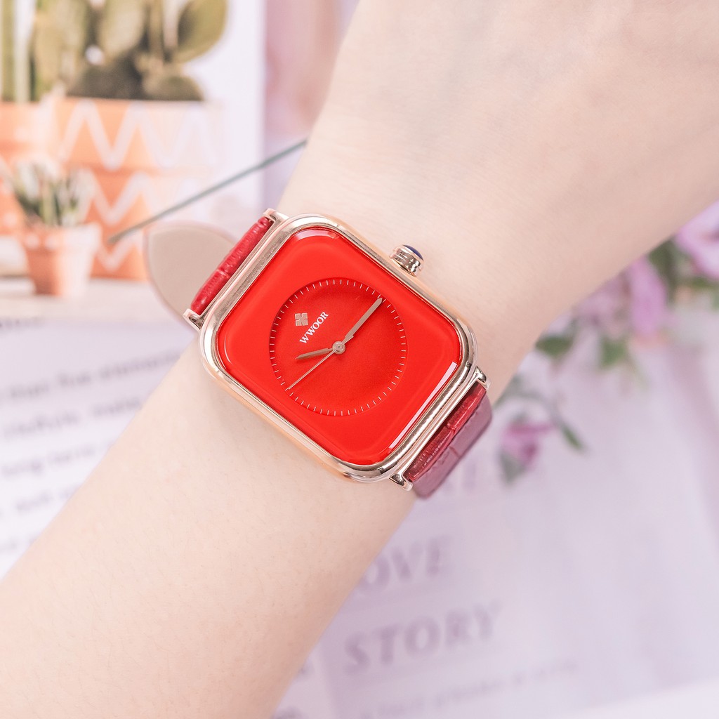 WWOOR women watch waterproof quartz analog PU leather red case material stainless steel fashion lady watch with box-8873