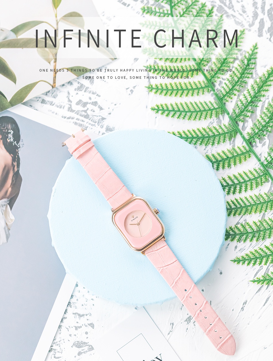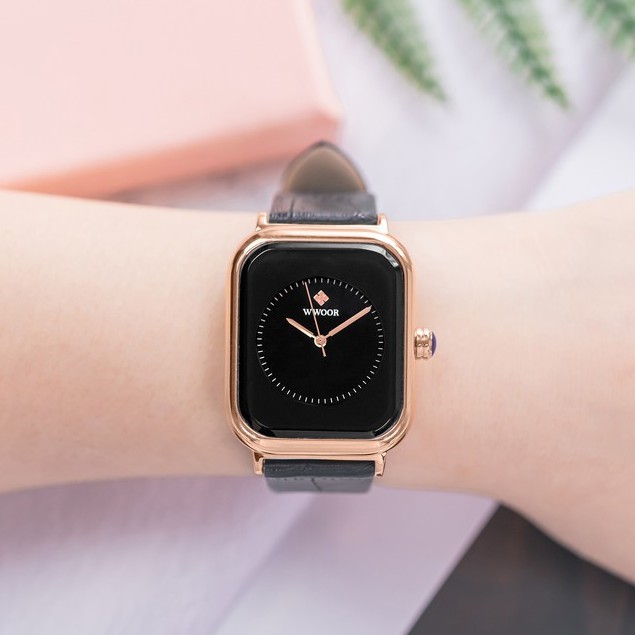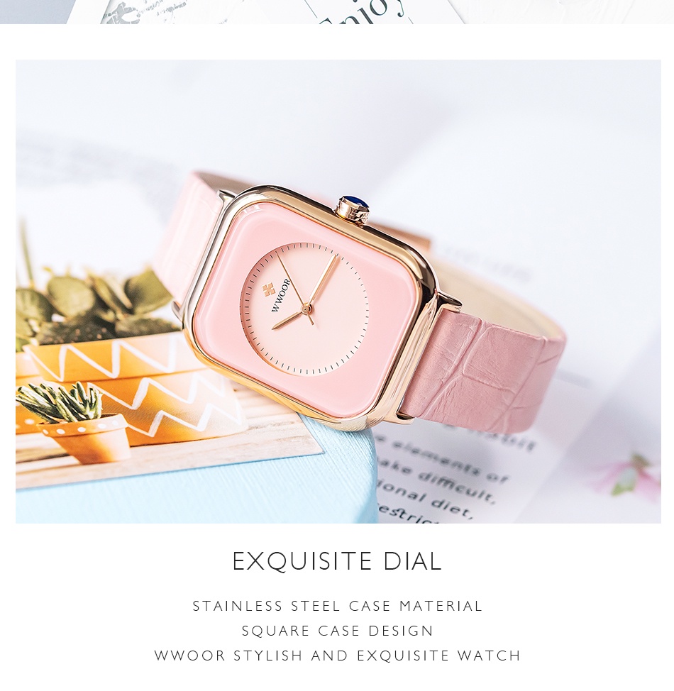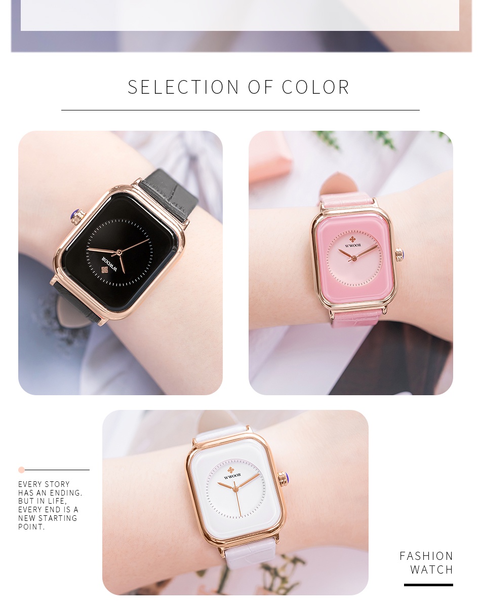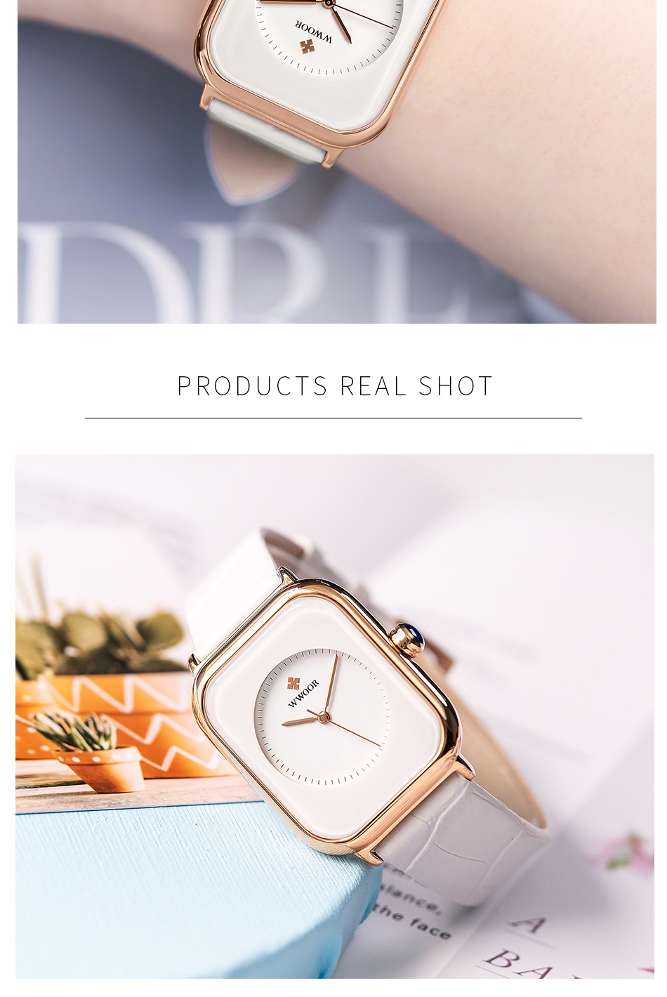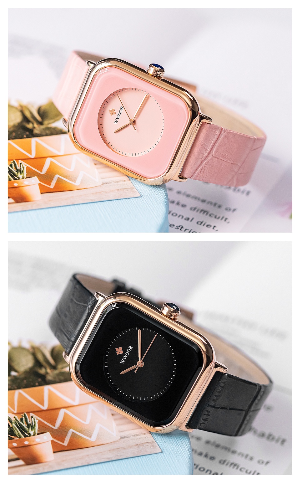 WWOOR women watch waterproof quartz analog PU leather red case material stainless steel fashion lady watch with box-8873
