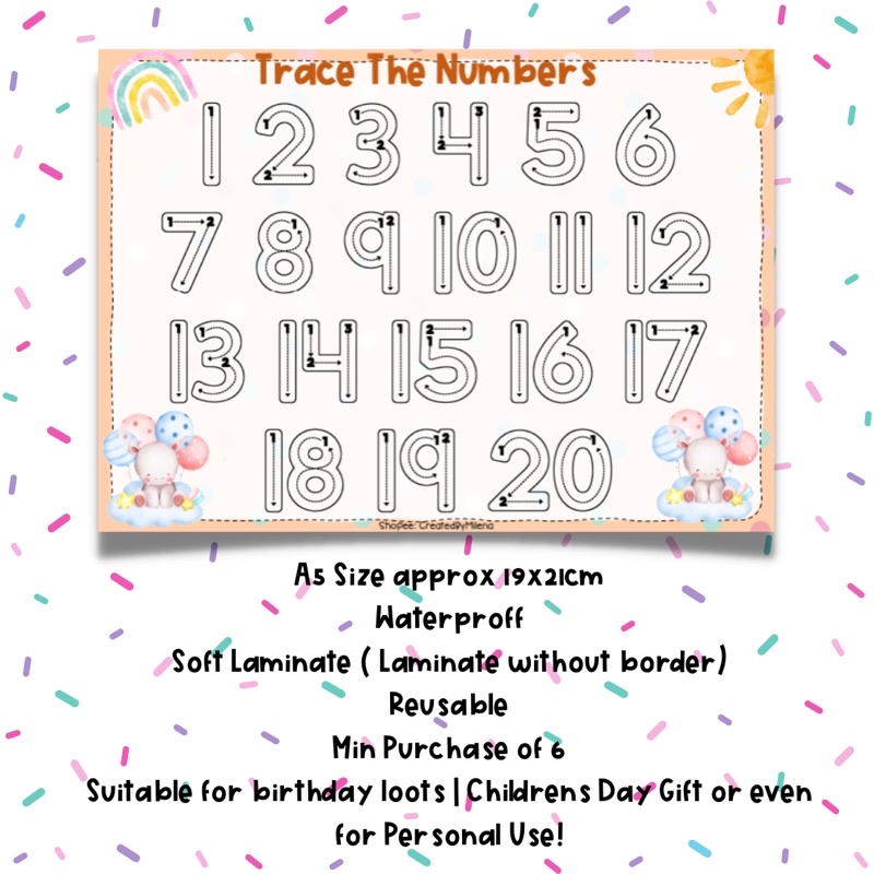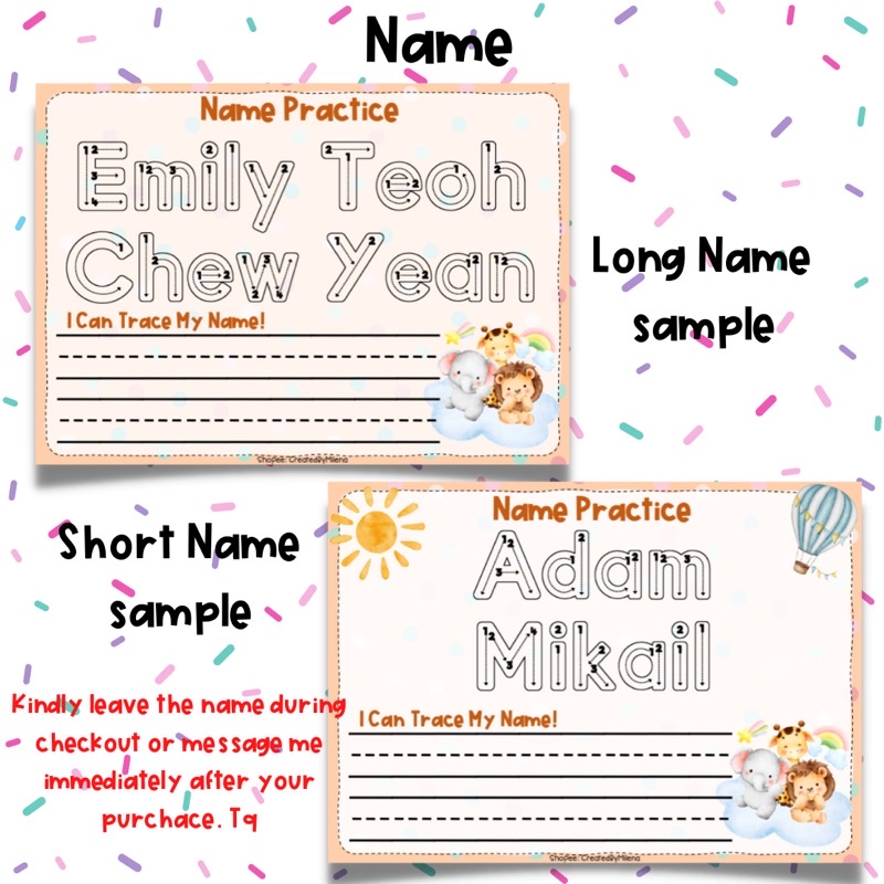 ❌ Name tracing x 2 , uppercase x 1 ( set of 2) total will be 6pcs. ( 3 cards x 2 = 6 cards)