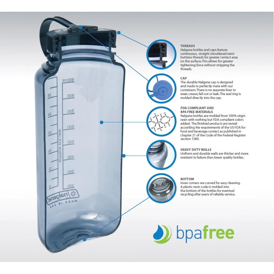 Graduations every 100ml help you keep track of your fluid intake or serve as a guideline when mixing up a beverage in your Nalgene.