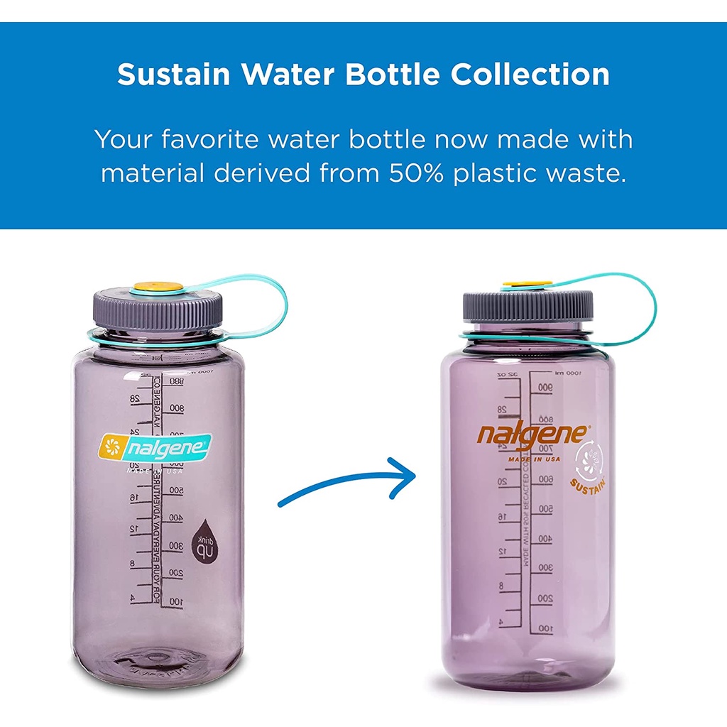 The Wide Mouth is Nalgene's Best Seller, with over fifty years of experience that go into creating a super durable, Leakproof bottle that is guaranteed for life. Made in the USA from Eastman's Tritan Renew, probably the best plastic for water bottles that is also at least half made of recycled plastics, offering a reliable durable, beautiful bottle that is also as environmentally friendly as possible.