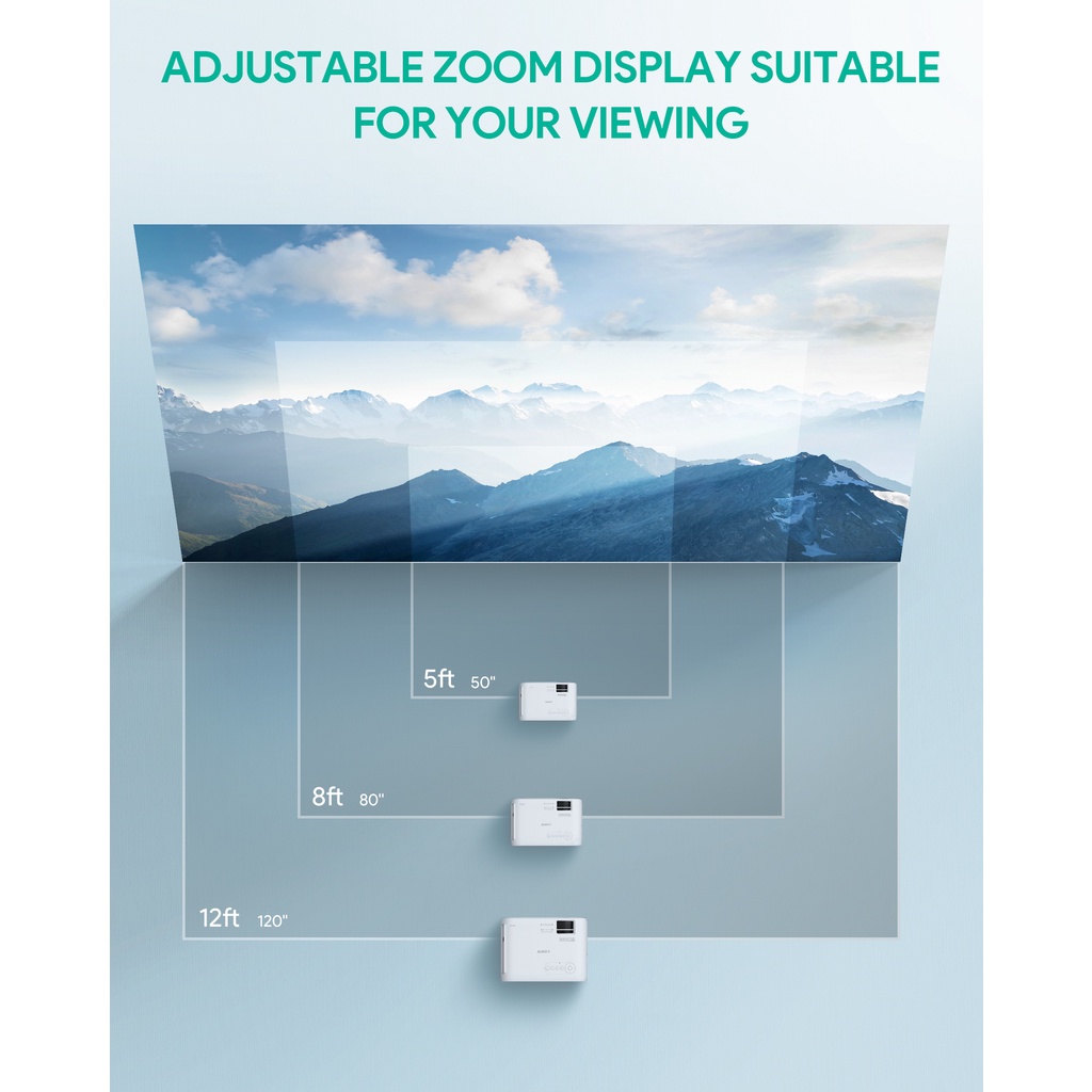 Large & Vivid Image: Stunning viewing with up to 120” image size (optimum 80–100" with 2–3m / 7–10ft projection distance). Sharp 1920 x 1080p resolution and higher 5500 lux image brightness for a vibrant picture with high contrast