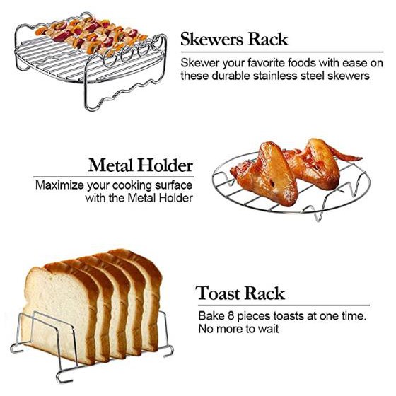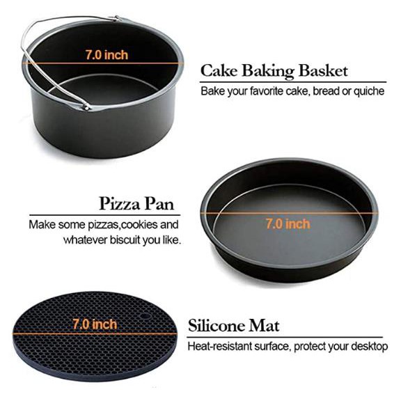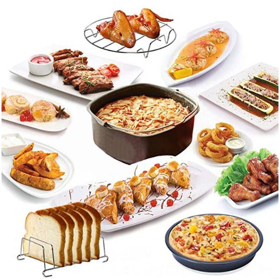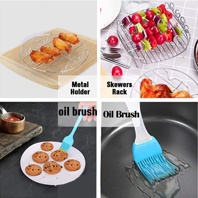 BONGDOU 7inch/8inch 9-in-1 Set Universal Air Fryer Accessories Skewer Rack Rusell BBQ Grill Pizza Tray Baking Barrel Pot