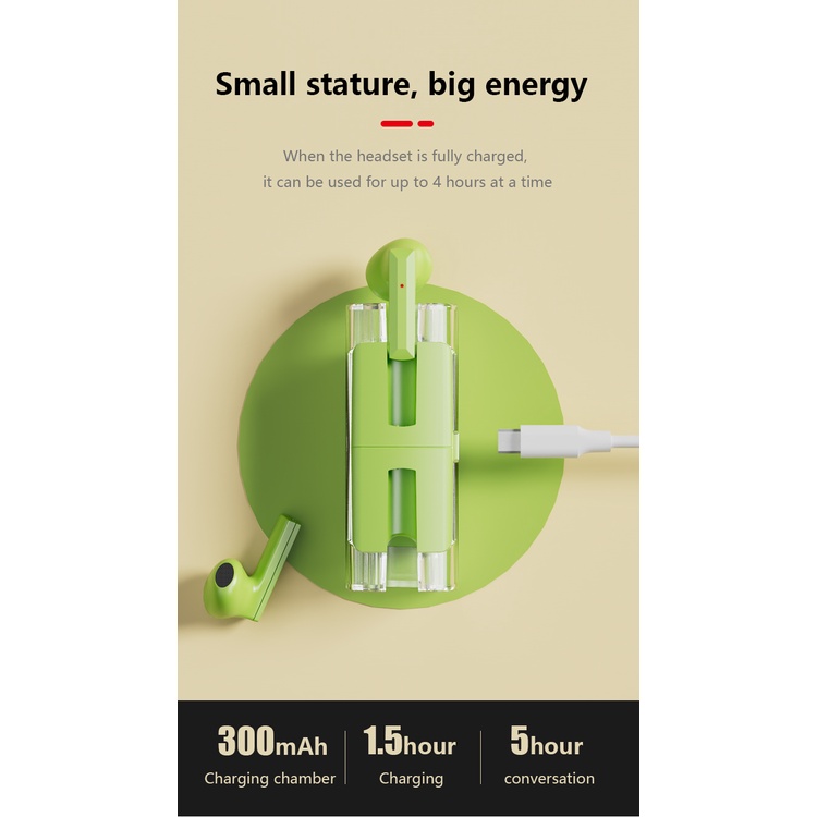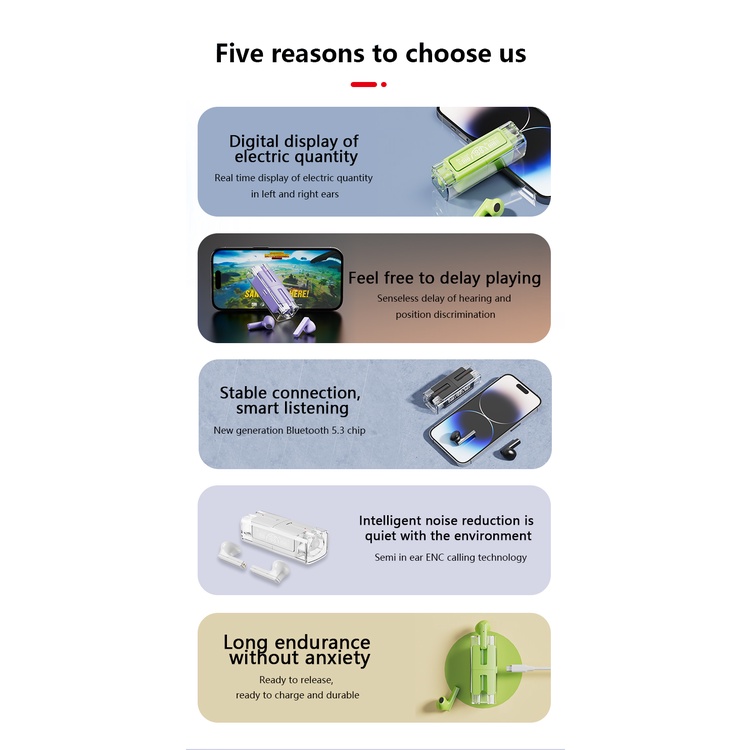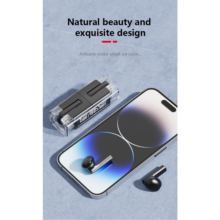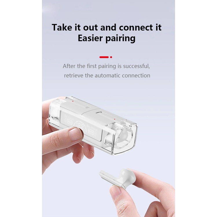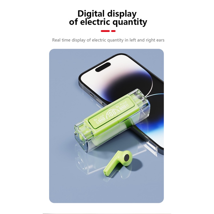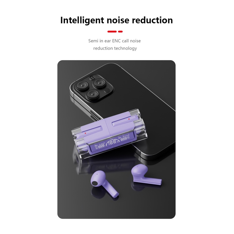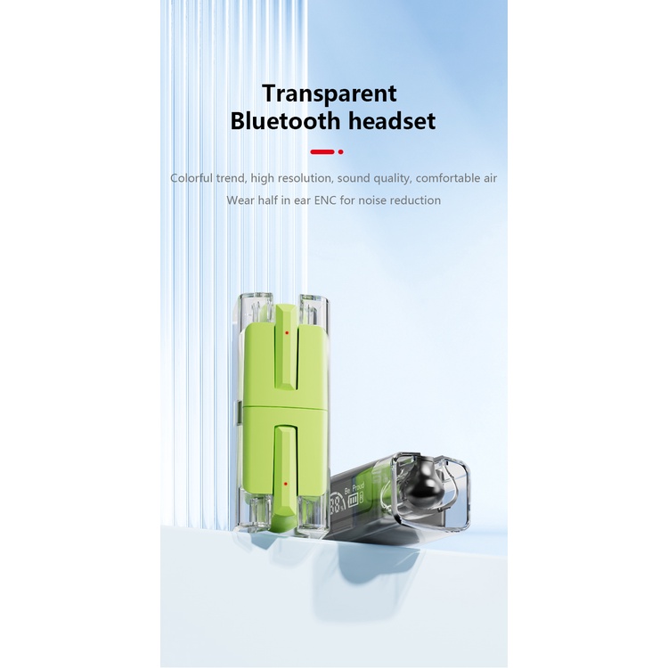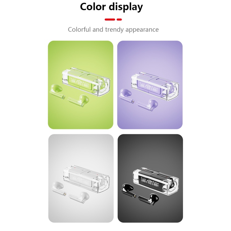 Bluetooth earphone stereo intelligent headset noise reduction headphone LED electricity display with transparent macaron charging box