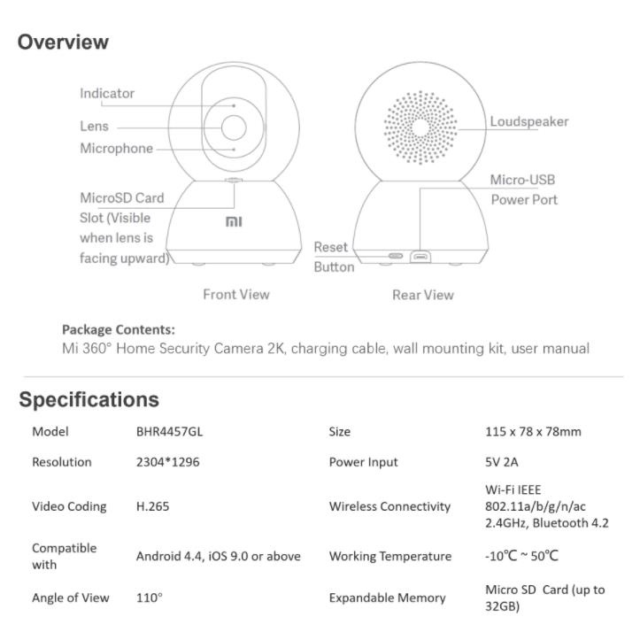 360°Horizontal Viewing Angle - Through the Mijia APP, you can control the horizontal rotation of the device and the horizontal panoramic view, and the vertical angle of the device can be manually adjusted