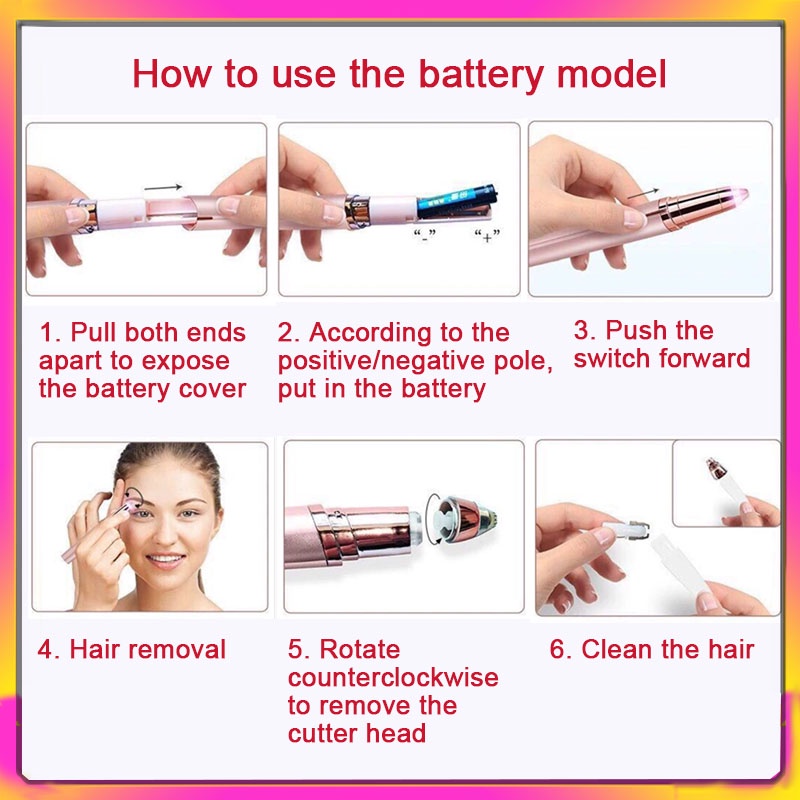3. Gently press the trimmer flat against the skin, the trimmer should not be tilted. Continue making small circular motions to remove unwanted hair.