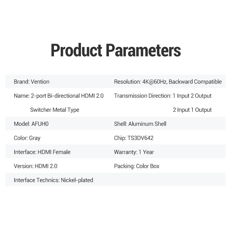 Vention 1 in 2 out / 2 in 1 out HDMI Splitter
