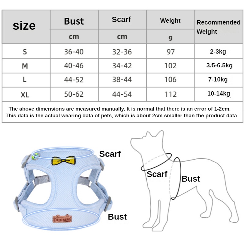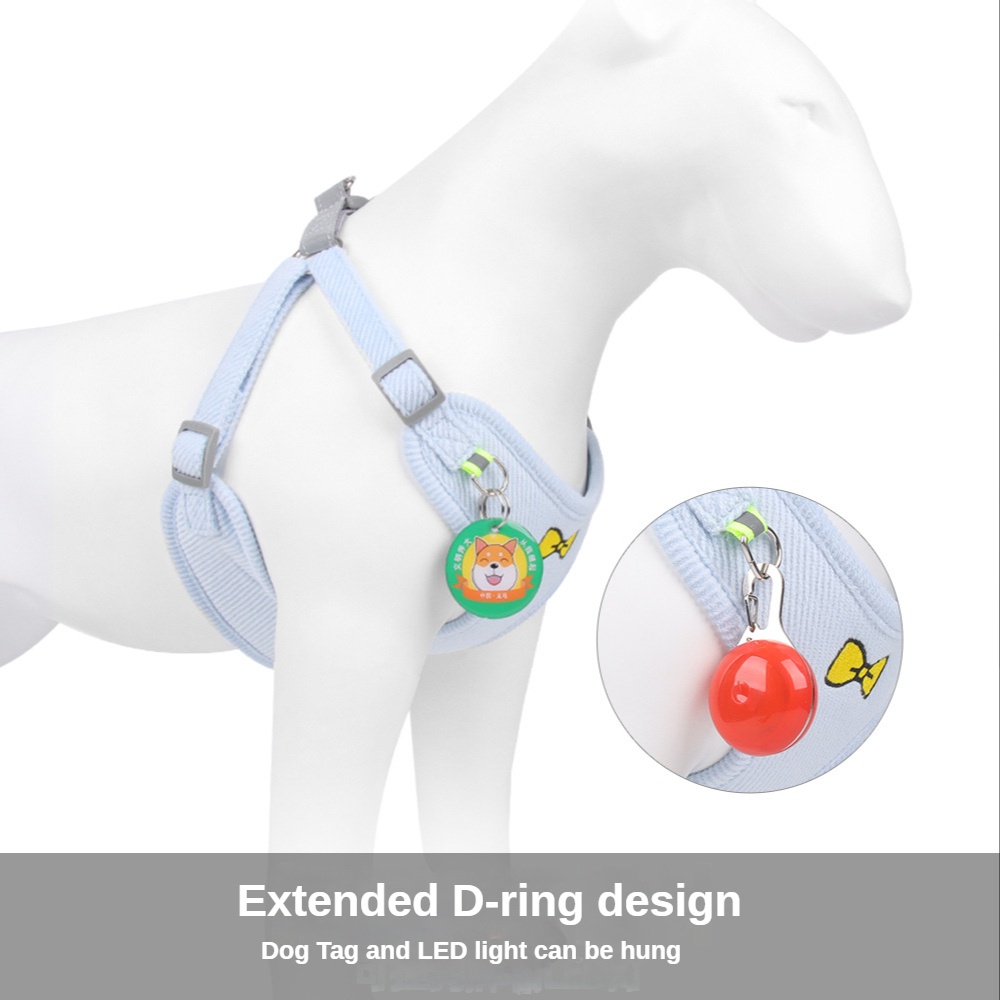 Pet Collar Soft Mesh Bow Padded Dog Harness with Leash Reflective Vest Chest Strap Breathable