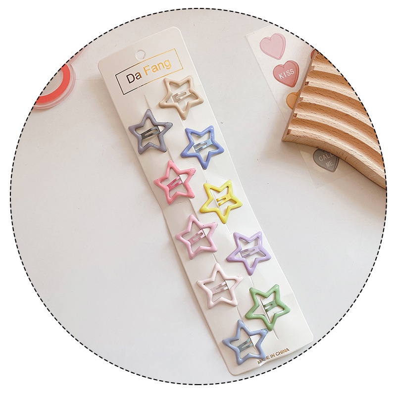 10Pcs/set Cream Color Five-pointed Star Children's BB Clip Hairpin All-match Geometric Metal Hair Clips For Baby Girl