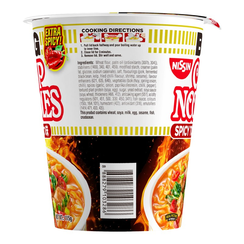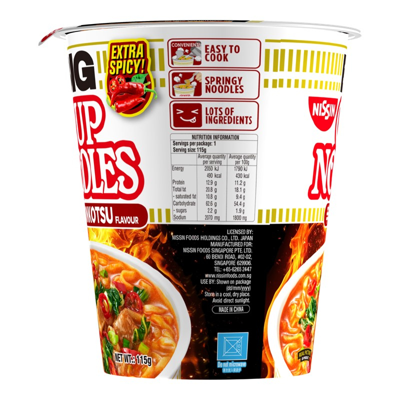 Spicy Tonkotsu Flavour, Big Original Flavour, Higher spiciness- spiciest product in entire cup noodle series