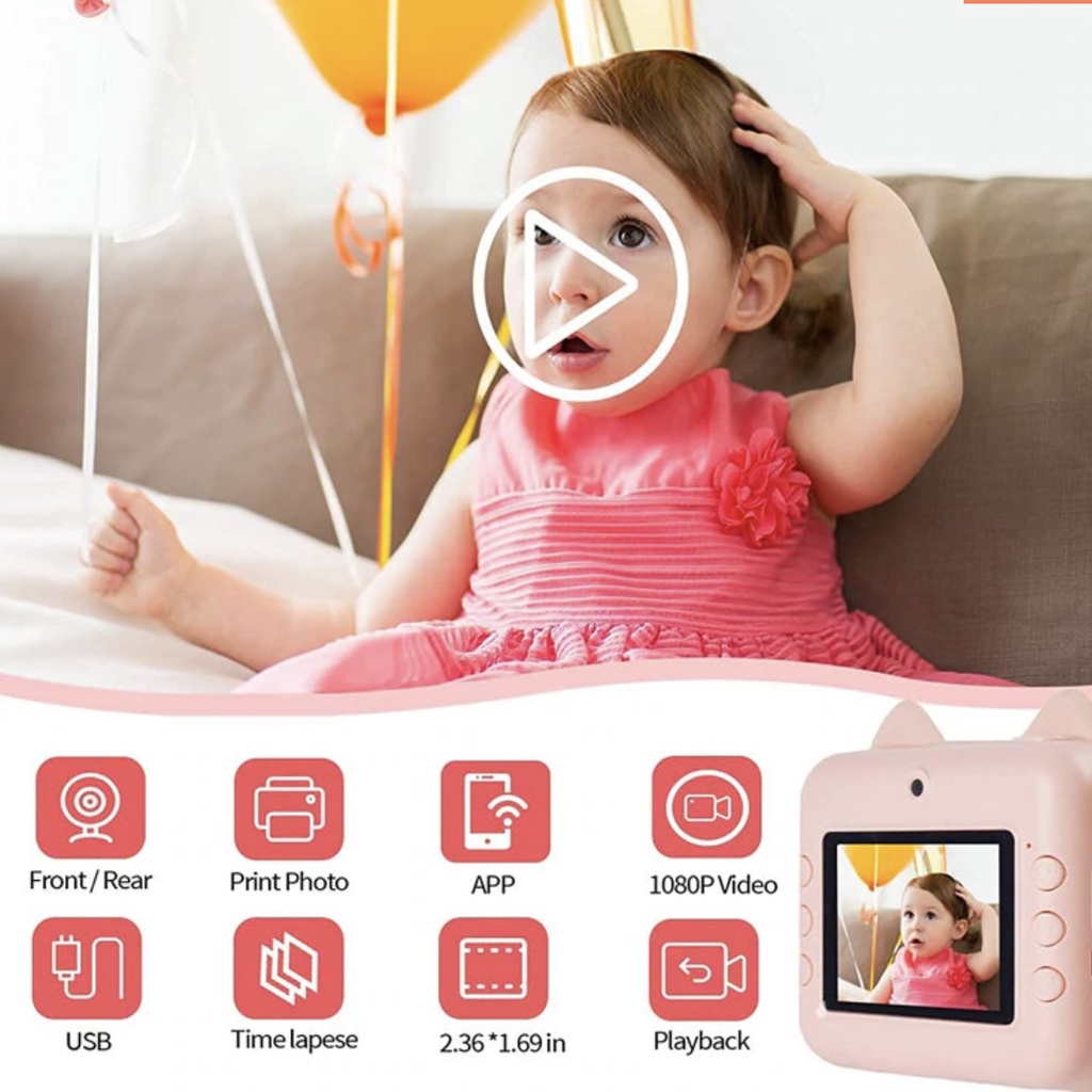 【3-IN-1 & Support WIFI Transmission】- Equipped with 12 million pixels of one-click switching front and rear cameras and 1080P HD video,the instant camera can not only take pictures and shoot videos but also print photos. It realizes real-time imaging,retains better quality of colorful and vivid photos, and lets kids record a happy childhood.It supports WIFI transmission,easier to download photos to the mobile phone and share to social platfor anytime.