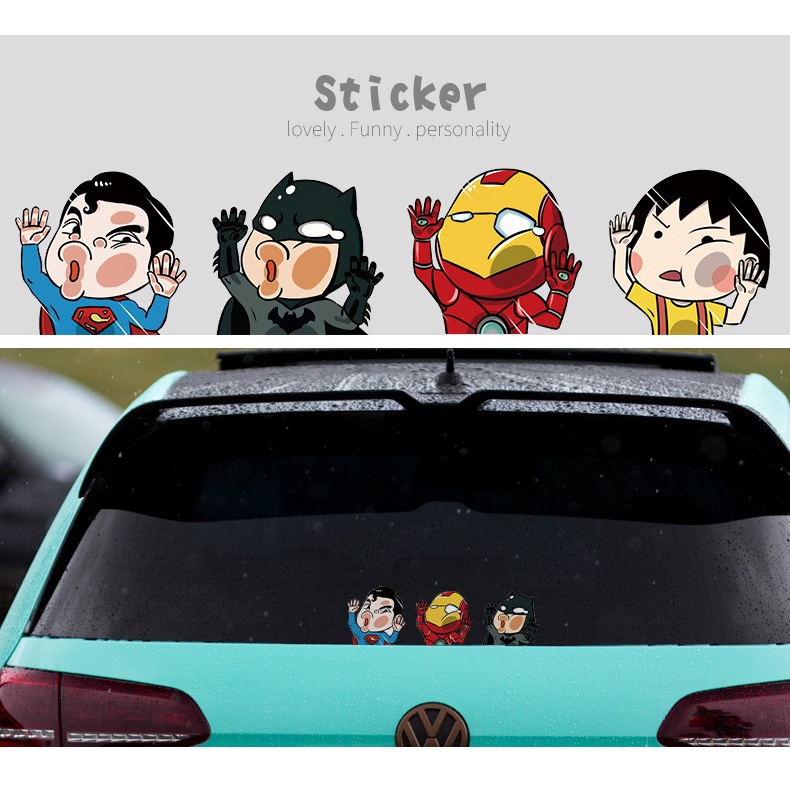 Funny Cartoon Marvel Avengers Super Hero Car Sticker Superman Spiderman Hit The Window Decal 20 Types