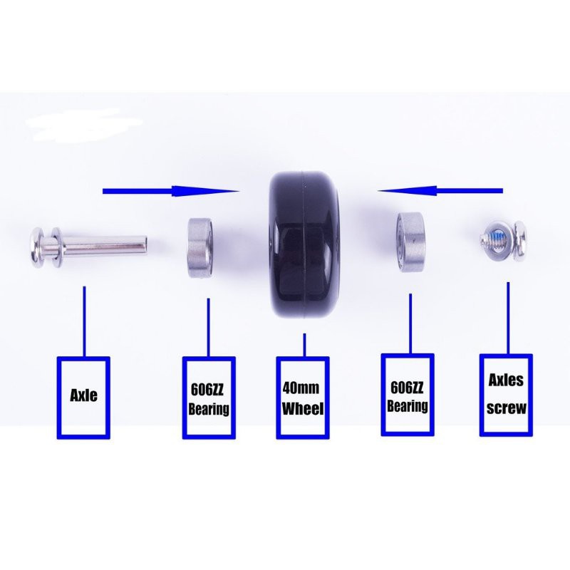 4x Axles. [4 X Axles(35MM ), this for 50mm whell, 4 X Axles(30MM), this for 40mm wheel.]