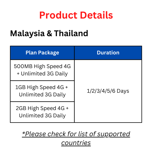 Malaysia & Thailand 1 to 6 Days Unlimited Data [eSIM] CHEAPEST IN SG!