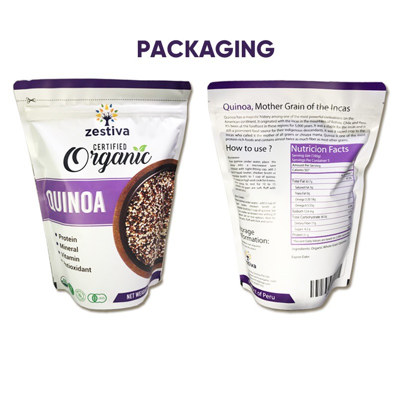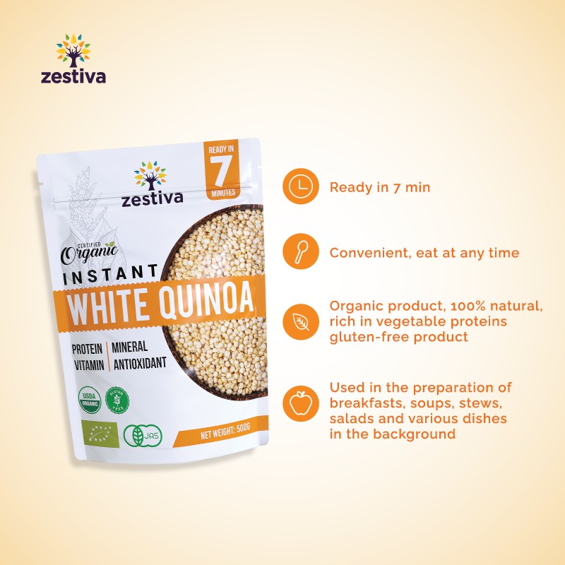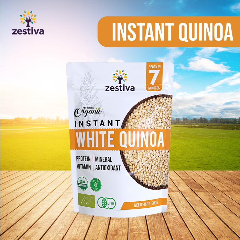 Zestiva Organic White, Tricolor, Red, Black, Instant White Quinoa, 1KG/pack