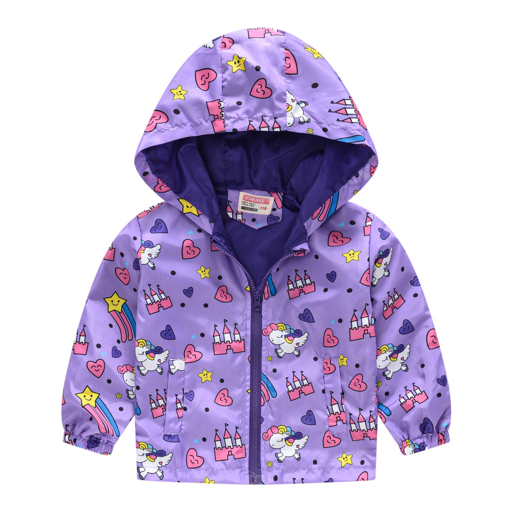 Children Summer Printed Jacket Cartoon Thin Hooded Boy Girl Zipper Windbreaker