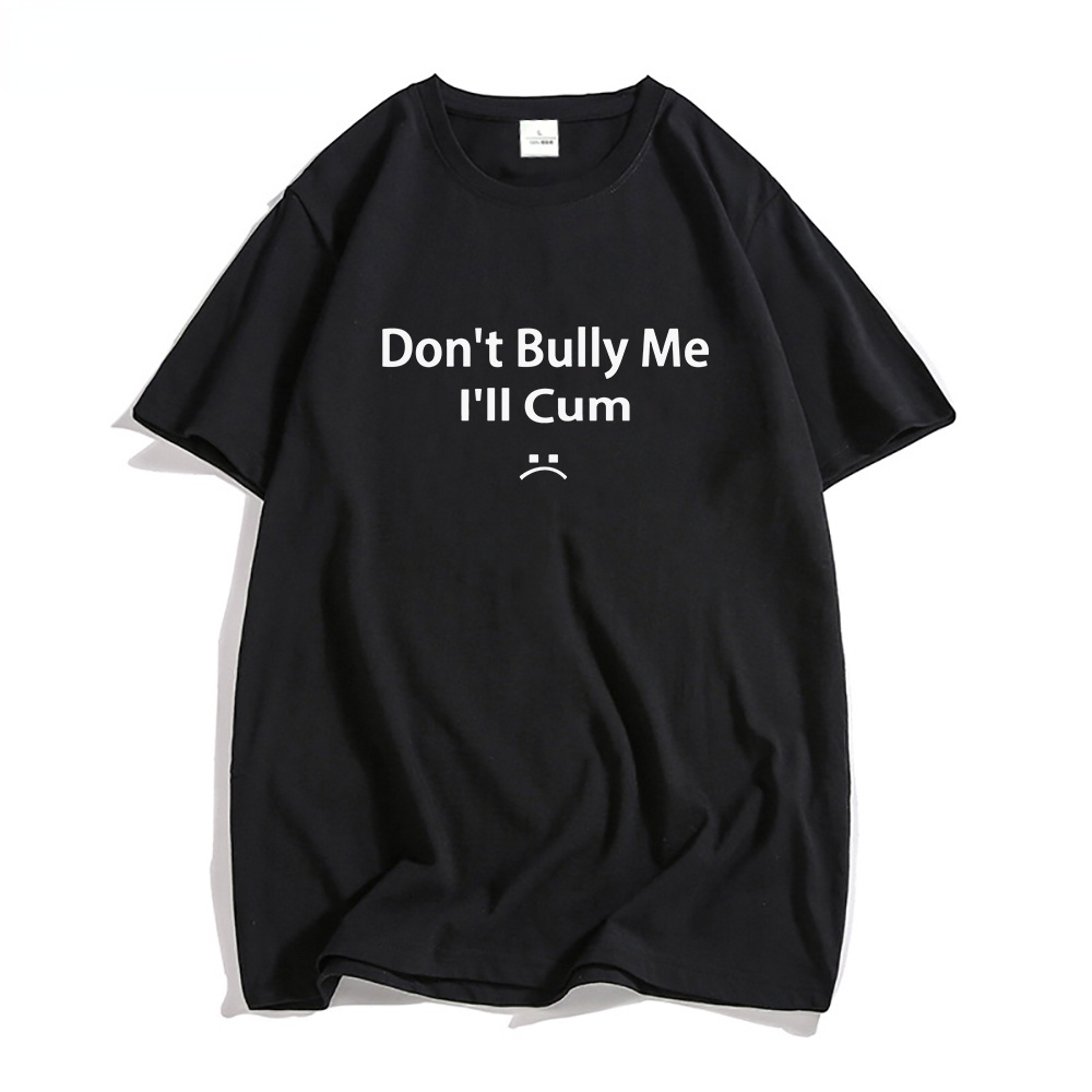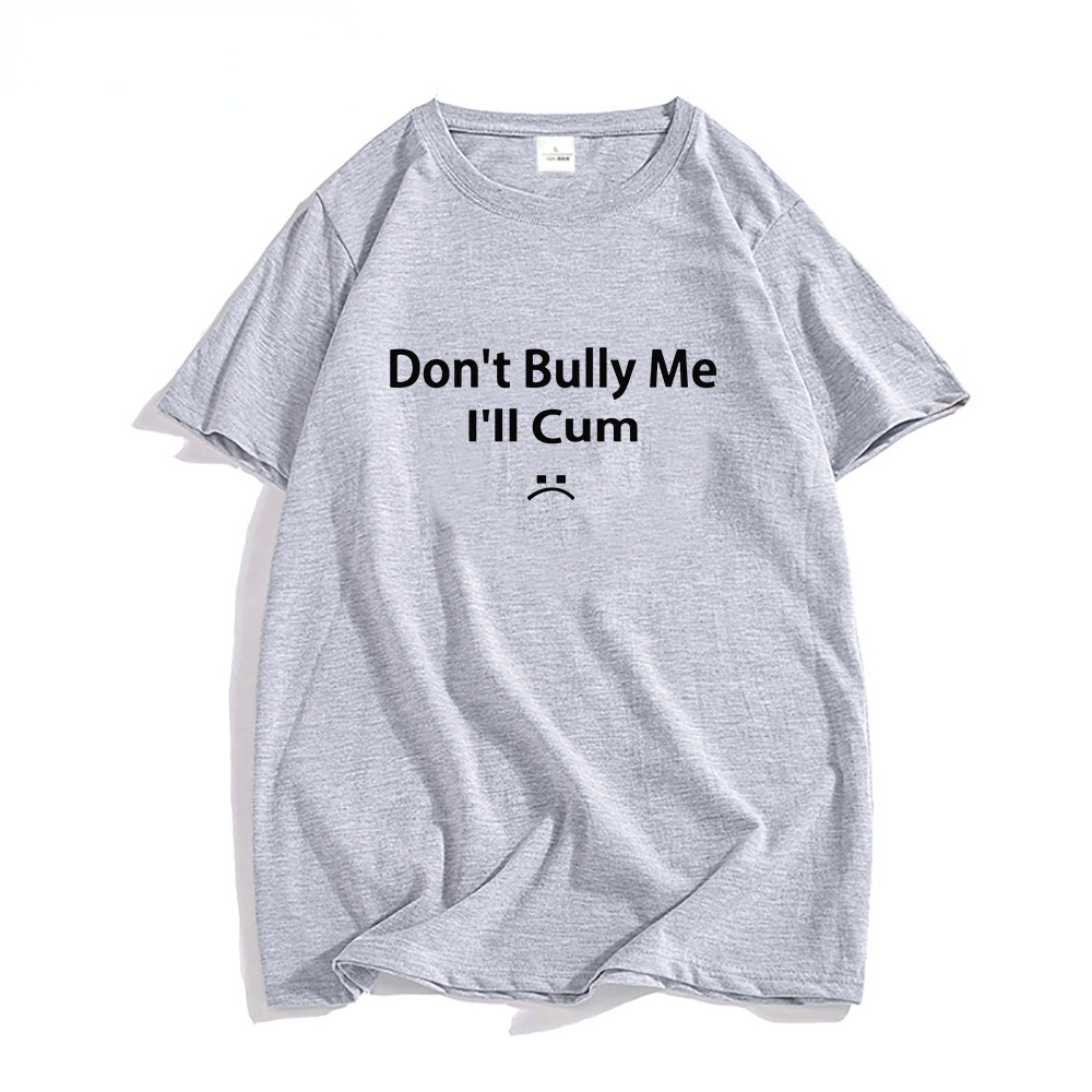 Mens T-shirt Funny Don't Bully Me I'll Cum Letter Print Tshirt Short Sleeve Oversized Streetwear Harajuku Shirt