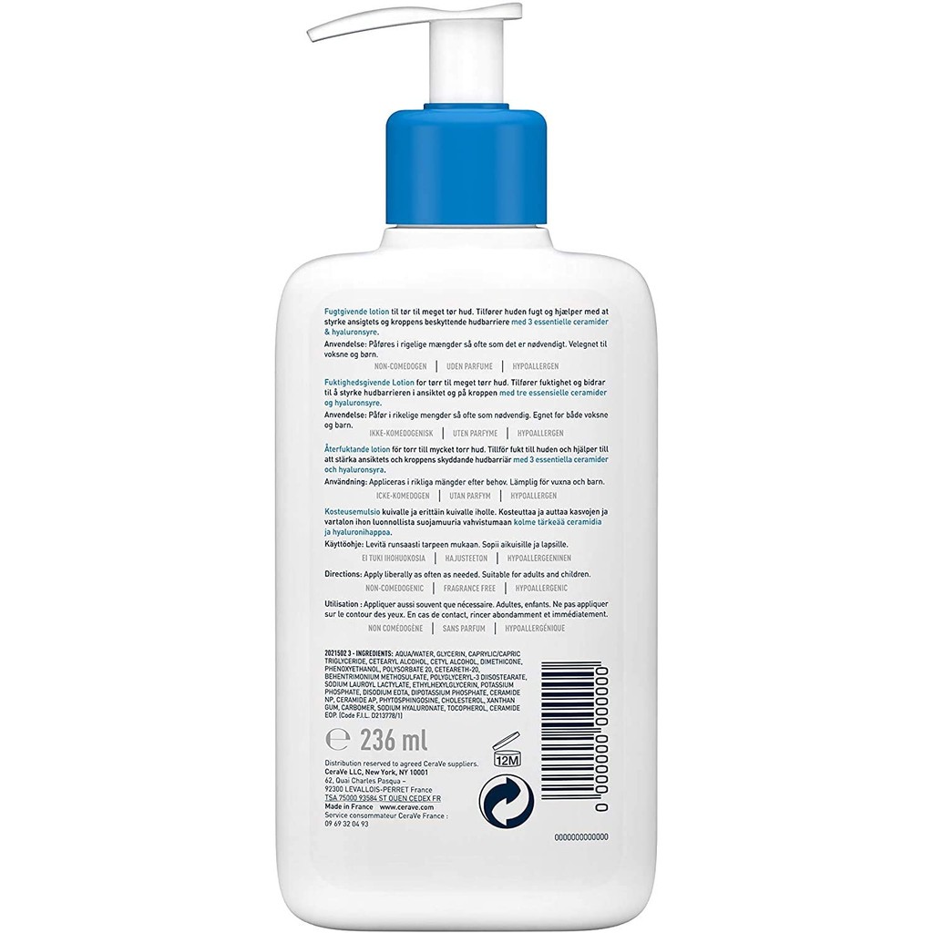 CeraVe Moisturizing Lotion is a lightweight, oil-free moisturizer with hyaluronic acid that helps hydrate the skin and restore its natural barrier. Formulated with three essential ceramides and hyaluronic acid, this moisturizing lotion features patented MVE Technology for long-lasting hydration and a lightweight, non-comedogenic formula that won’t clog pores. Hypoallergenic and non-irritating, this daily moisturizer is gentle on the skin as it provides a steady stream of 24-hour hydration.