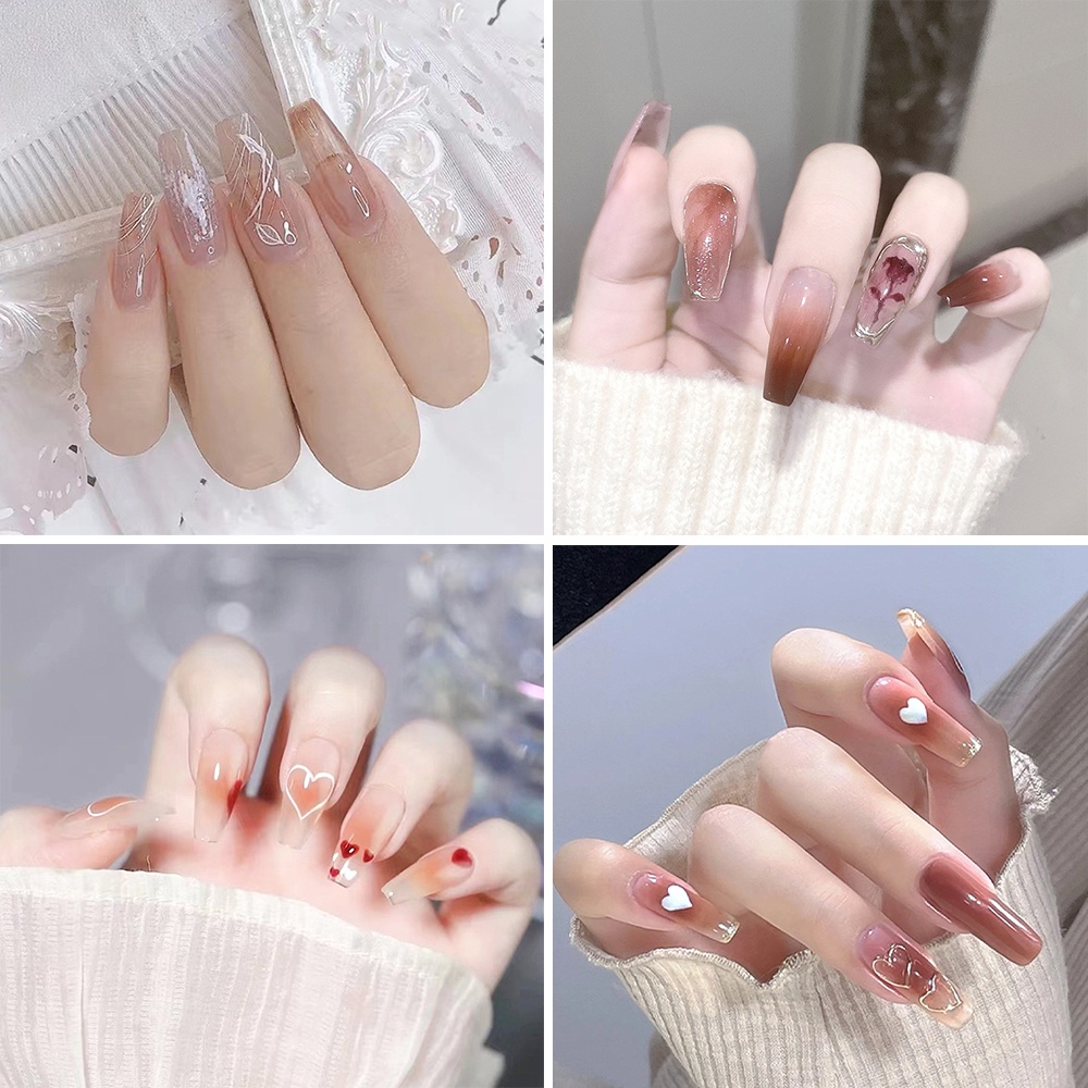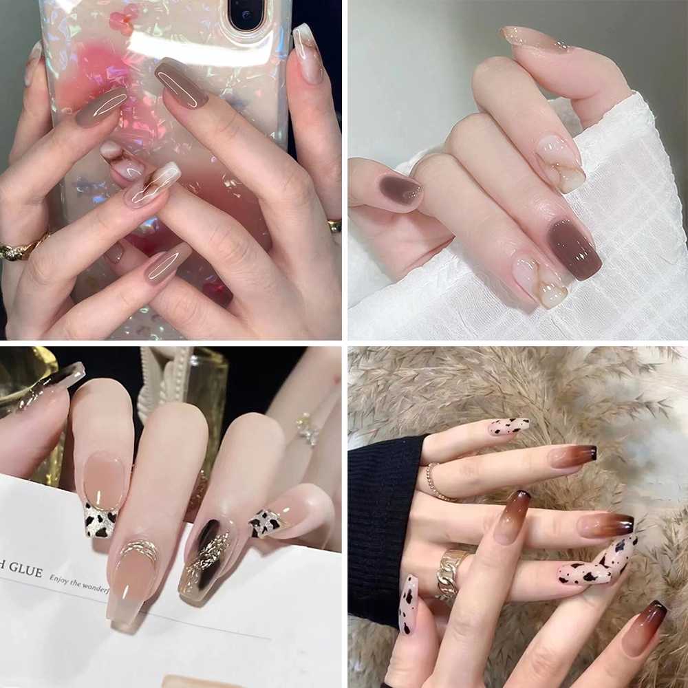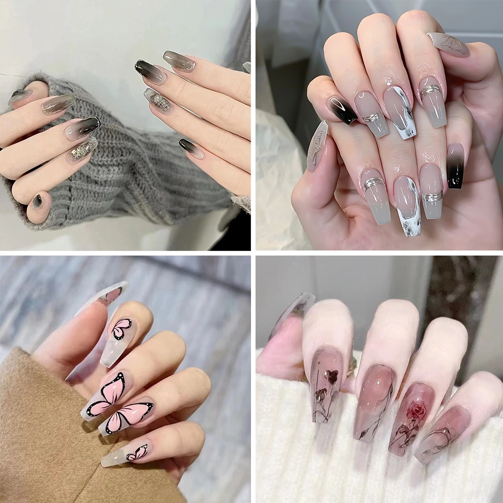 YKHMYB 24 pcs set with glue nails fake nails nail sticker long nail glue art false nails french nail fake nails with design manicure press on nails 假指甲 指甲貼 fake nails press on short nail coffin fake n