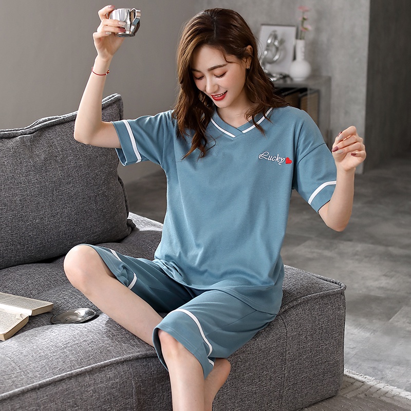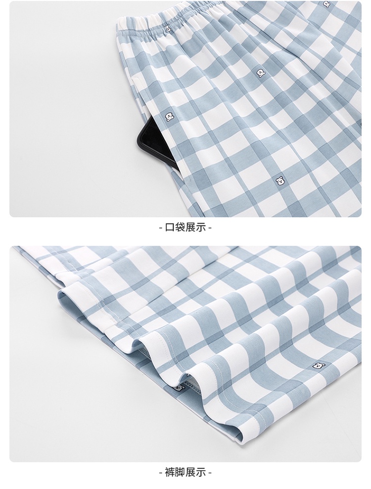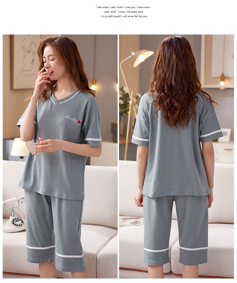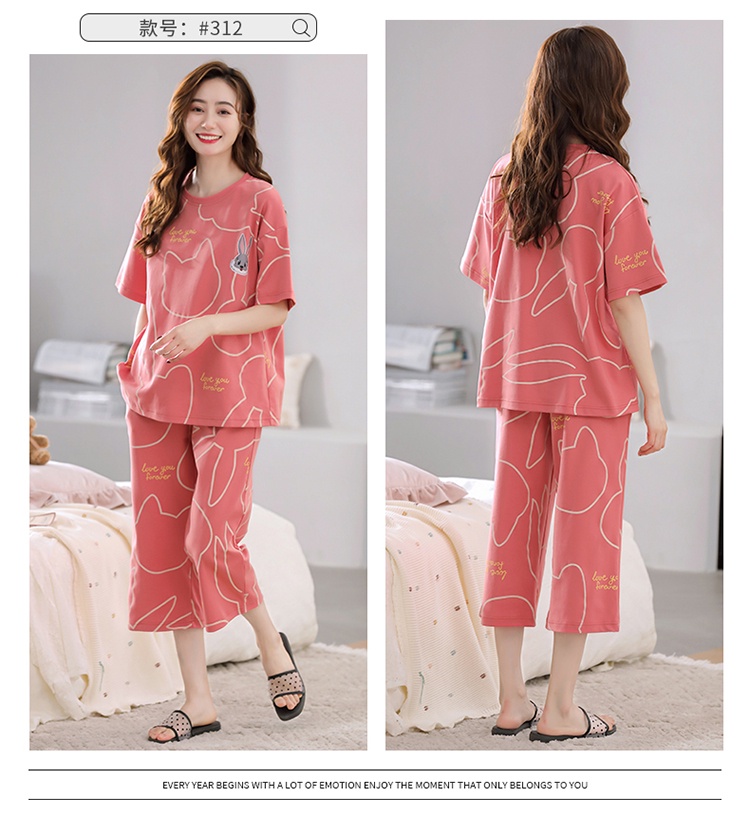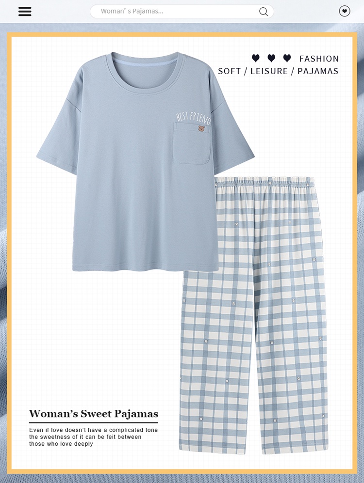 Plus Size Sleepwear 3/4 Length Pyjamas Women M-3XL Cotton Short Sleeve Pajamas Set Popular Plaid Stripe Printing Homewear