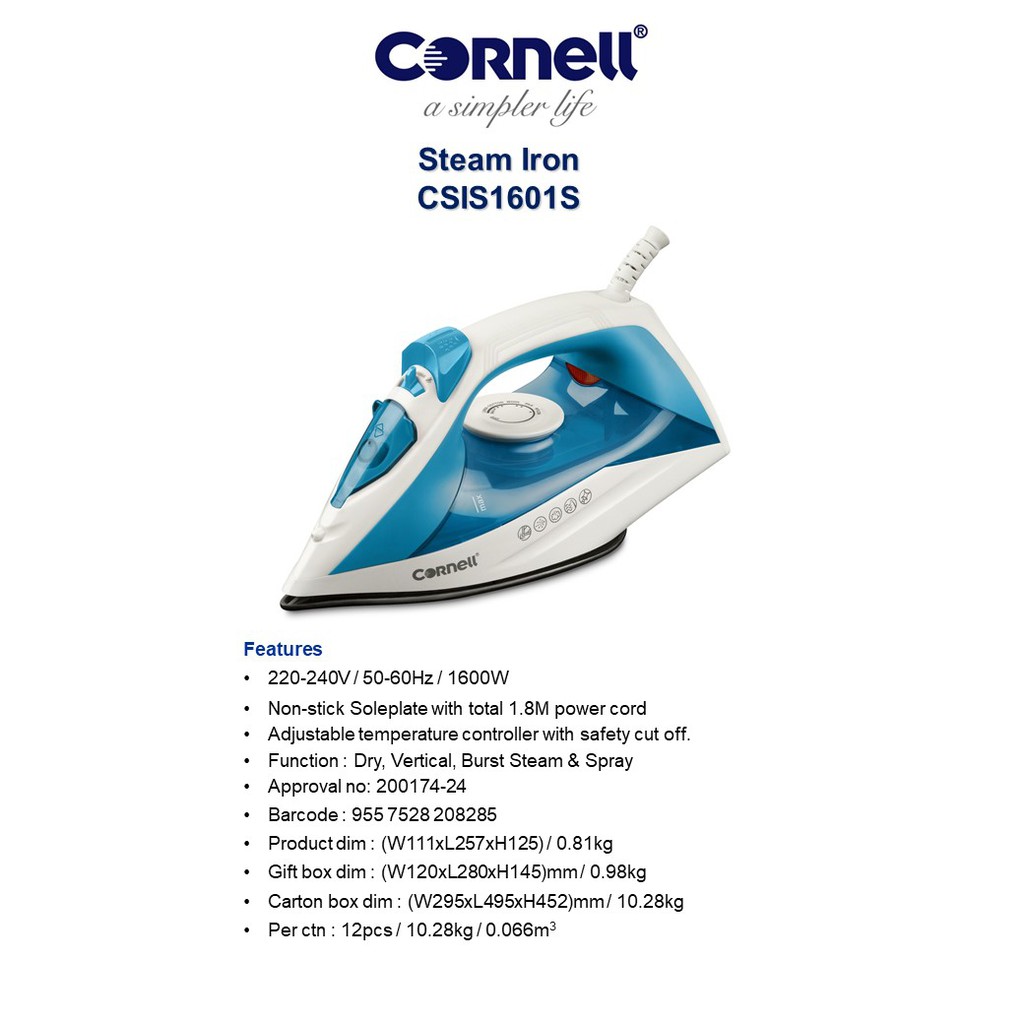 Cornell 1600 Watt Large Steam Iron CSIS1601S