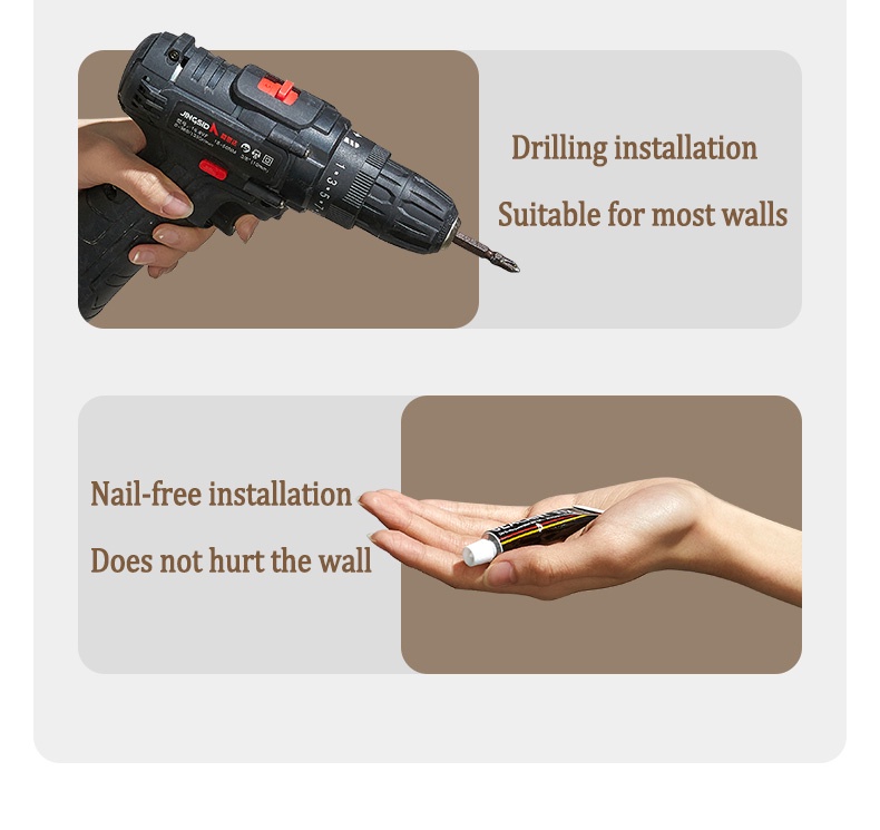 ②non-drilling:screw sticker(Installation instructions are included in the package)