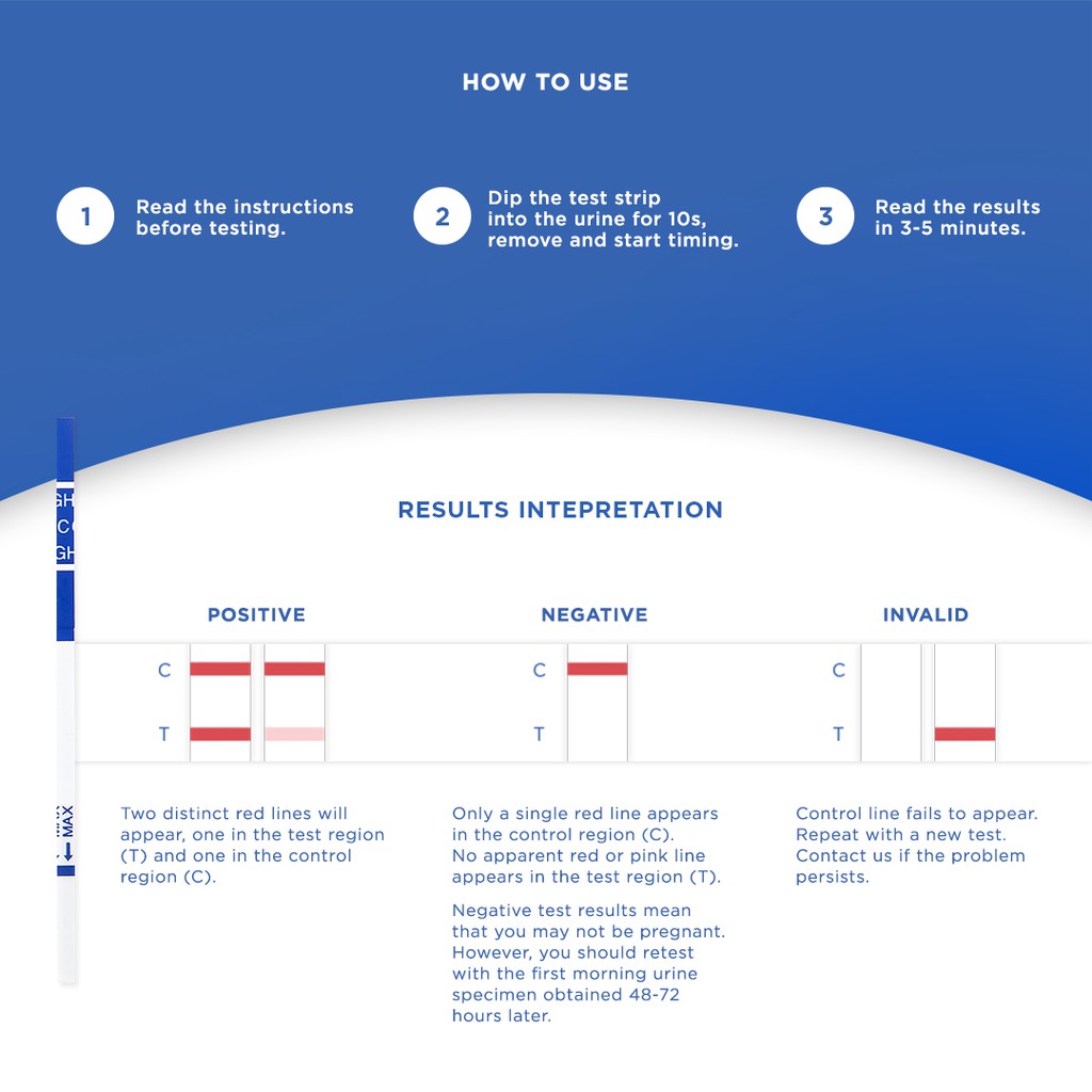 * Contains 1/2/3 Pregnancy Test Strips (based on what you choose)