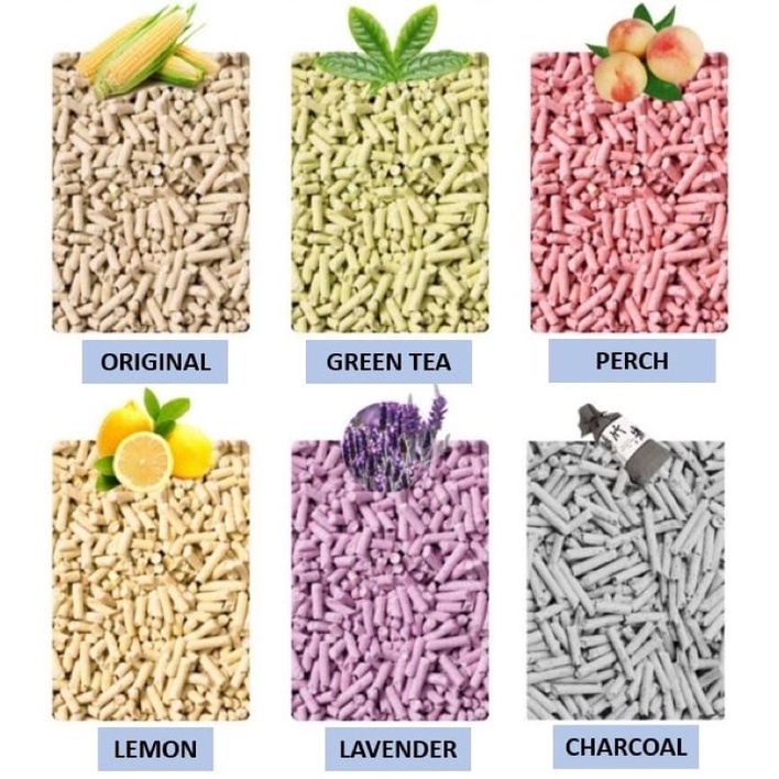 6 liters of cat litter 2.2 kg. All natural. Deodorant. Easy to rinse. Various fruit flavors.