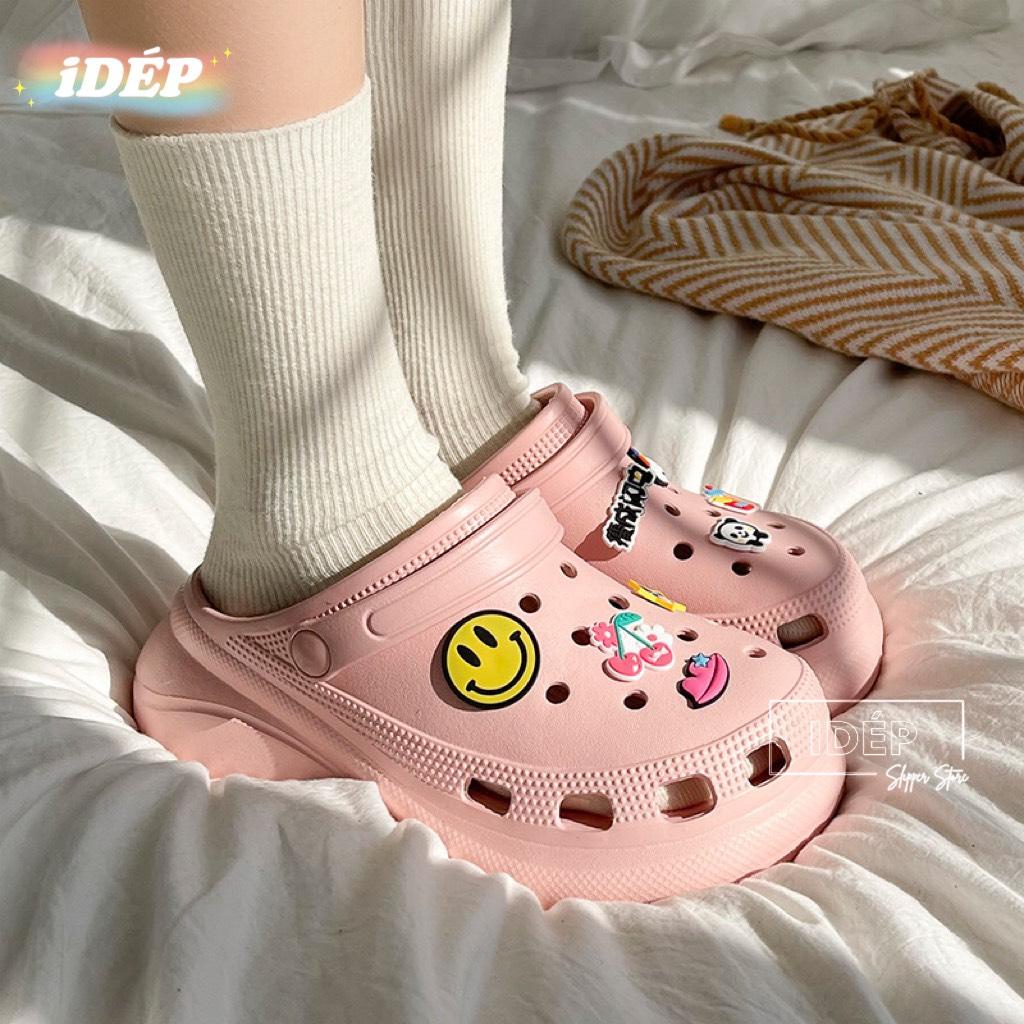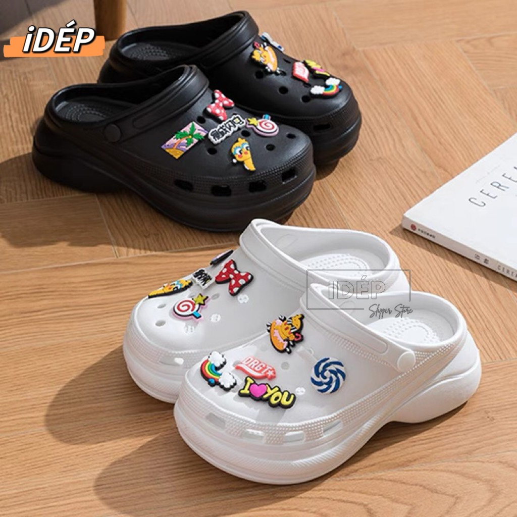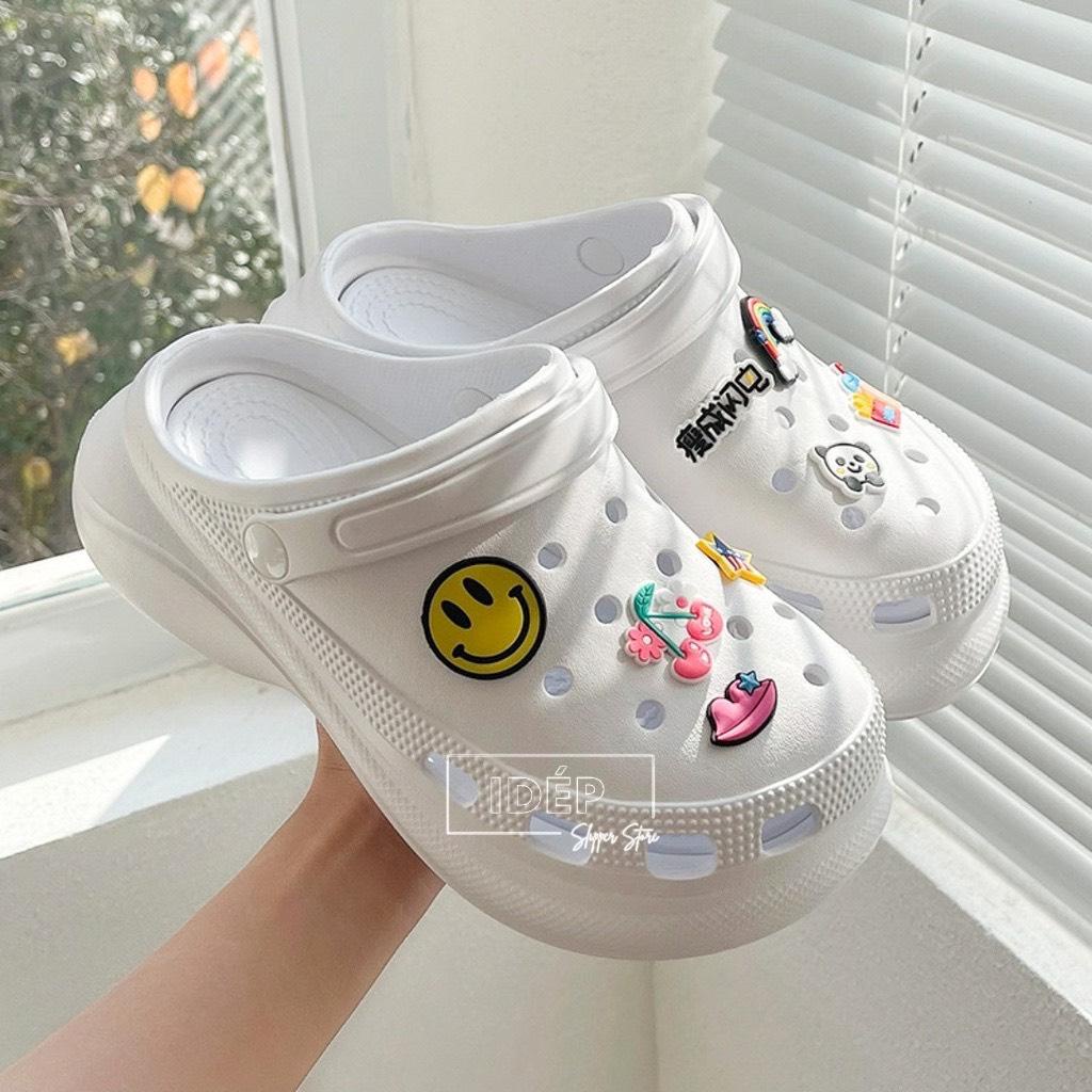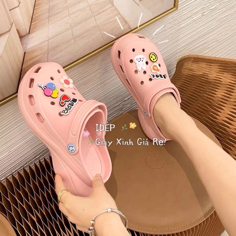 [High Quality] Crocs With Rubber Increased Insoles 6cm For Women I Slippers With cute EVA Stickers As Gift - Thick Sole SL067 (Real Picture + VIDEO)