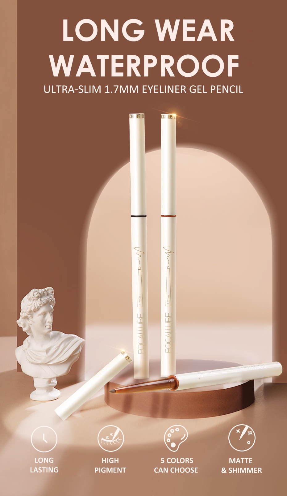 Focallure Waterproof Ultra-slim 1.7mm Gel Pencil Soft Long lasting High pigmented Eyeliner