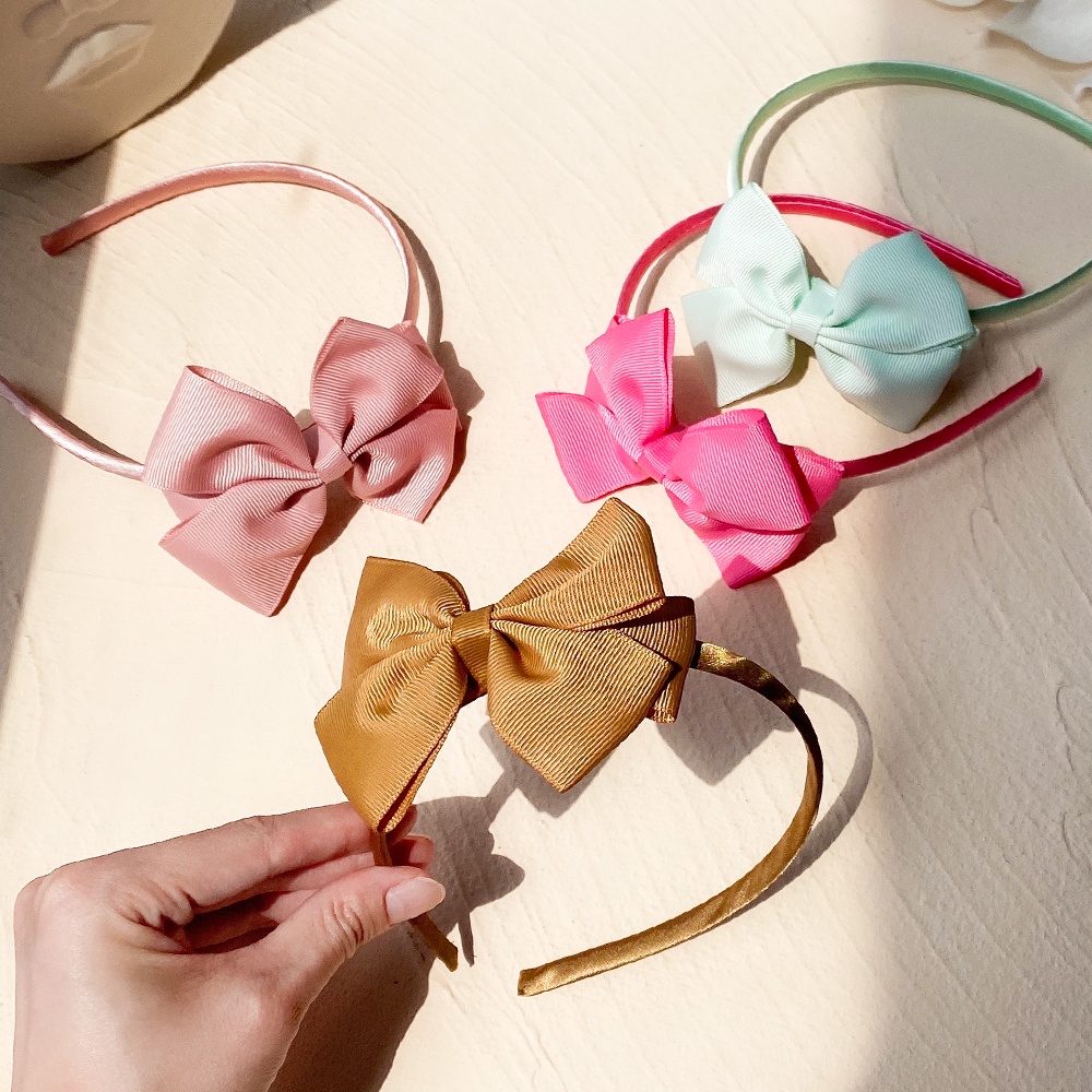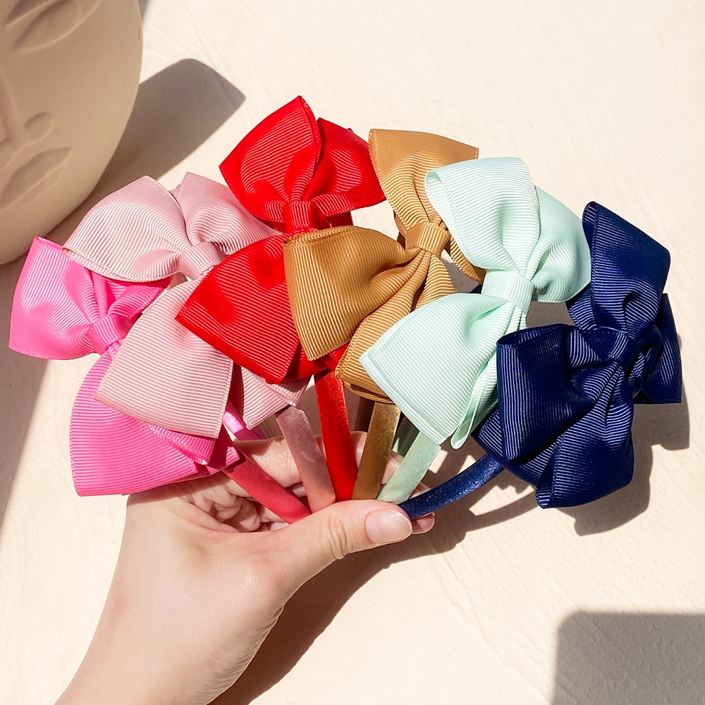 1PCS 4Inches Solid Color Hair Band for Girls Baby Grosgrain Ribbon Bowknot Hairband Scrunchies Sweet Headband Headwear Hair Accessories