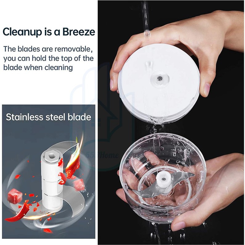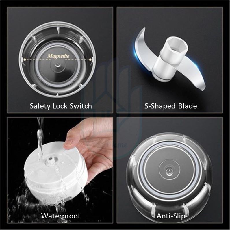 ?Easy To Use and Clean: One touch button to switch the chopper on or off, just fill the container with your ingredients, lock the cover, you can get an evenly shred food in a few seconds. The whole body of the crusher is waterproof and the blades are removable. You can directly rinse the food chopper after use, which is easy cleaning with no residue.