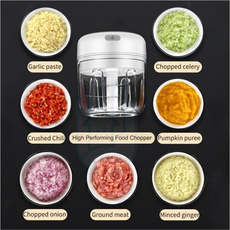 ?Portable & USB Rechargeable: Mini chopper it is a great option when you travel or on camping trips. This Food Processor Mincer support USB rechargeable and can be used about 35 times after fully charged.