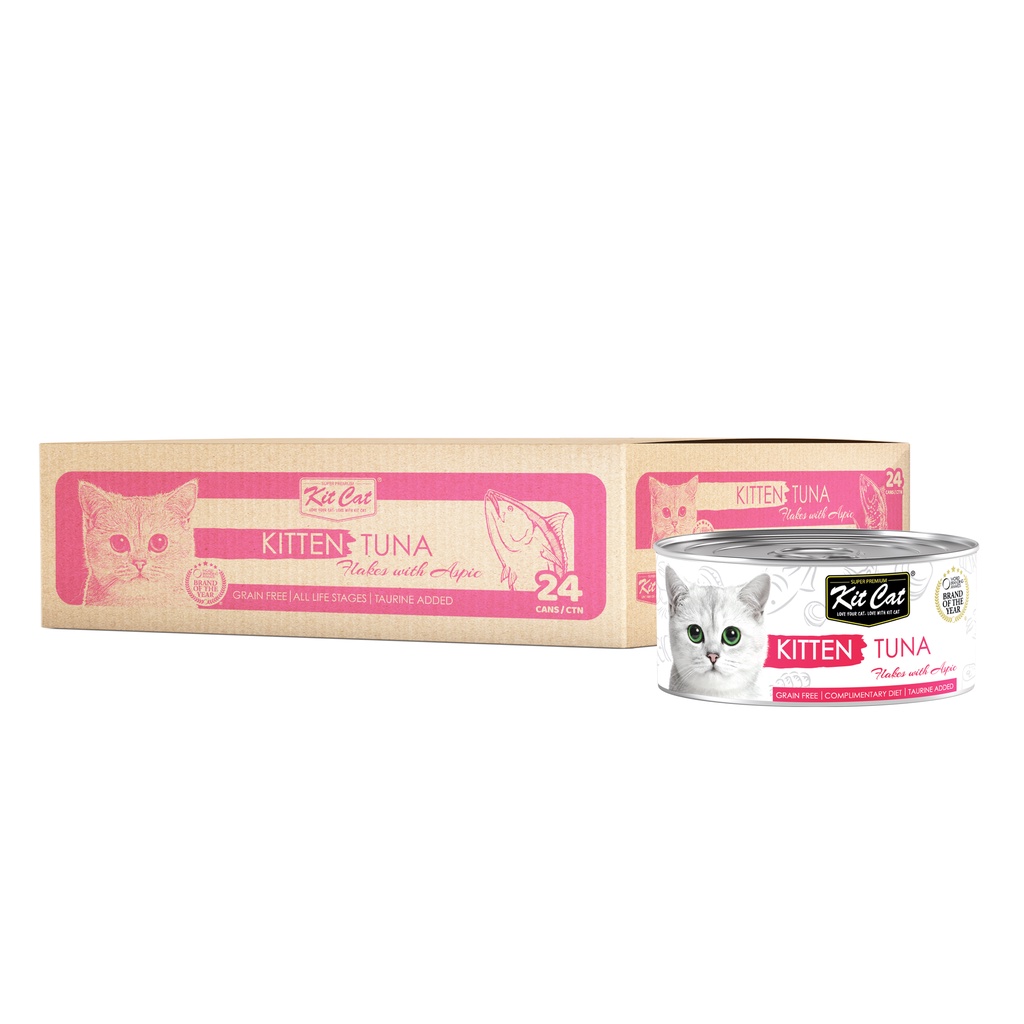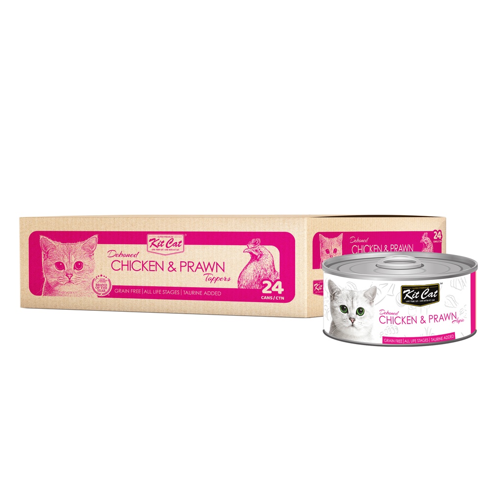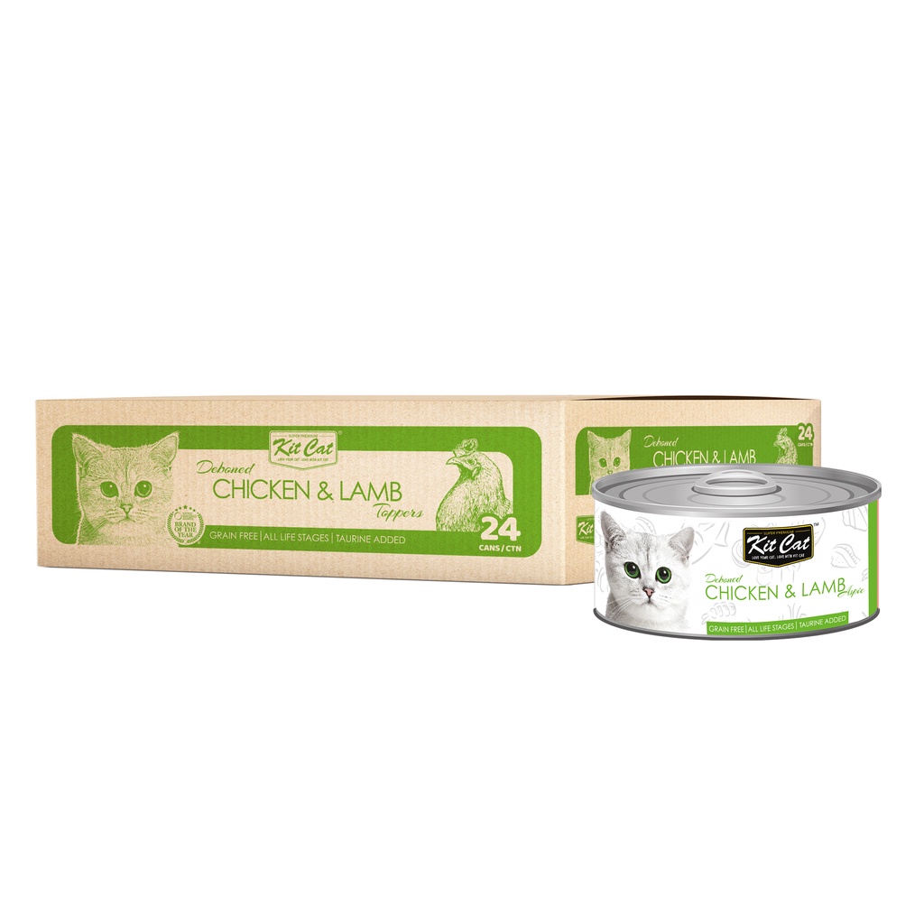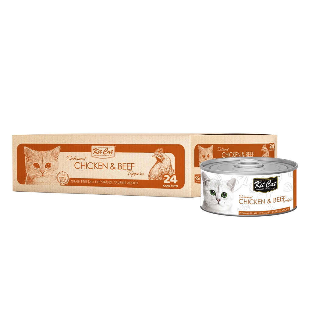 Kit Cat wet food was created by our nutritionists who are also cat lovers and made with the goodness of carefully selected natural ingredients which contains no added colours or preservatives. Our Kit Cat 100% grain free diet offers your cat a pH level balance wholesome nutrition to support a healthy lifestyle, reducing risk of kidney stones and urinary tract infection. With selected quality deboned meat containing essential vitamins, our Kit Cat formula also has an optimal ration of omega-3 to omega-6 fatty acids that promotes a healthy heart, skin and coat for your cats. In addition, this diet contains Fructooligosaccharides which promotes a healthier digestive track and taurine for healthy eyes.