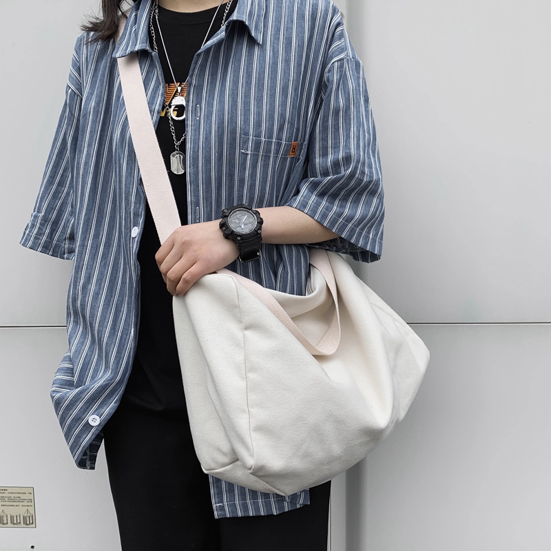 Ready Stock Korean Fashion Ins Simple Japanese Ulzzang Canvas Big Capacity Men Shoulder Bag