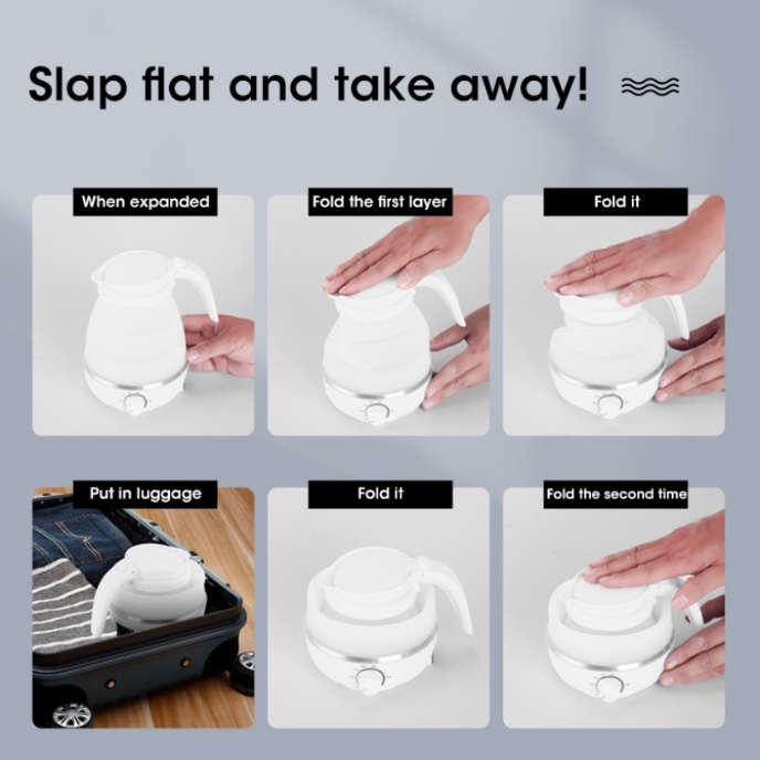 [READY STOCK]700ML Mini Folding Electric Travel Kettle 304 Stainless Steel Food Grade Silicone Foldable Water Kettles
