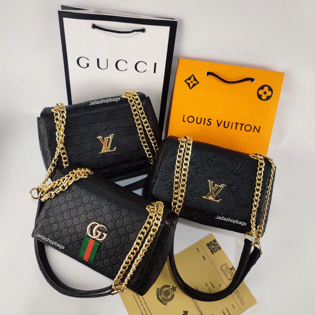 Tas wanita slingbag SELEMPANG & shoulder L1 KODE 0535 - SELEMPANG BLACK EDITION EMBOS KODE-0535 (free paperbag,cover,bill) uk.22x14 - BYRFA BAG PREMIUM BLACK EDITION -Shopbags KODE 0535