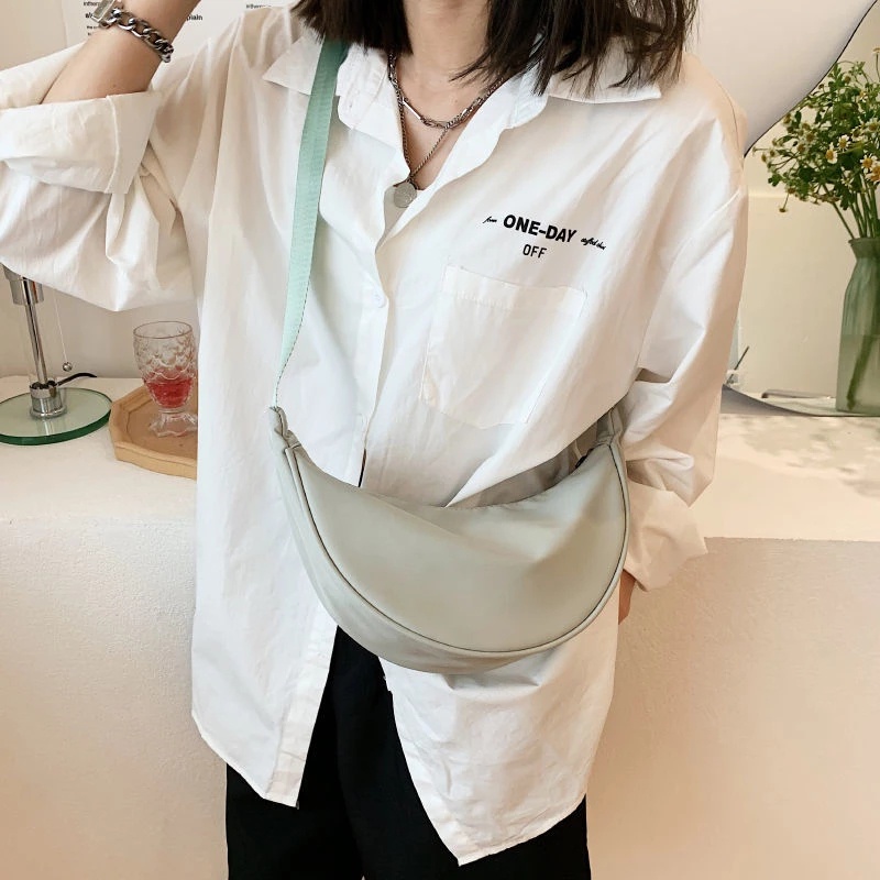 Women Cute Chest Bag Large Capacity Solid Color Travel Crossbody Bag Half Moon Nylon Daily Casual Shoulder Bag