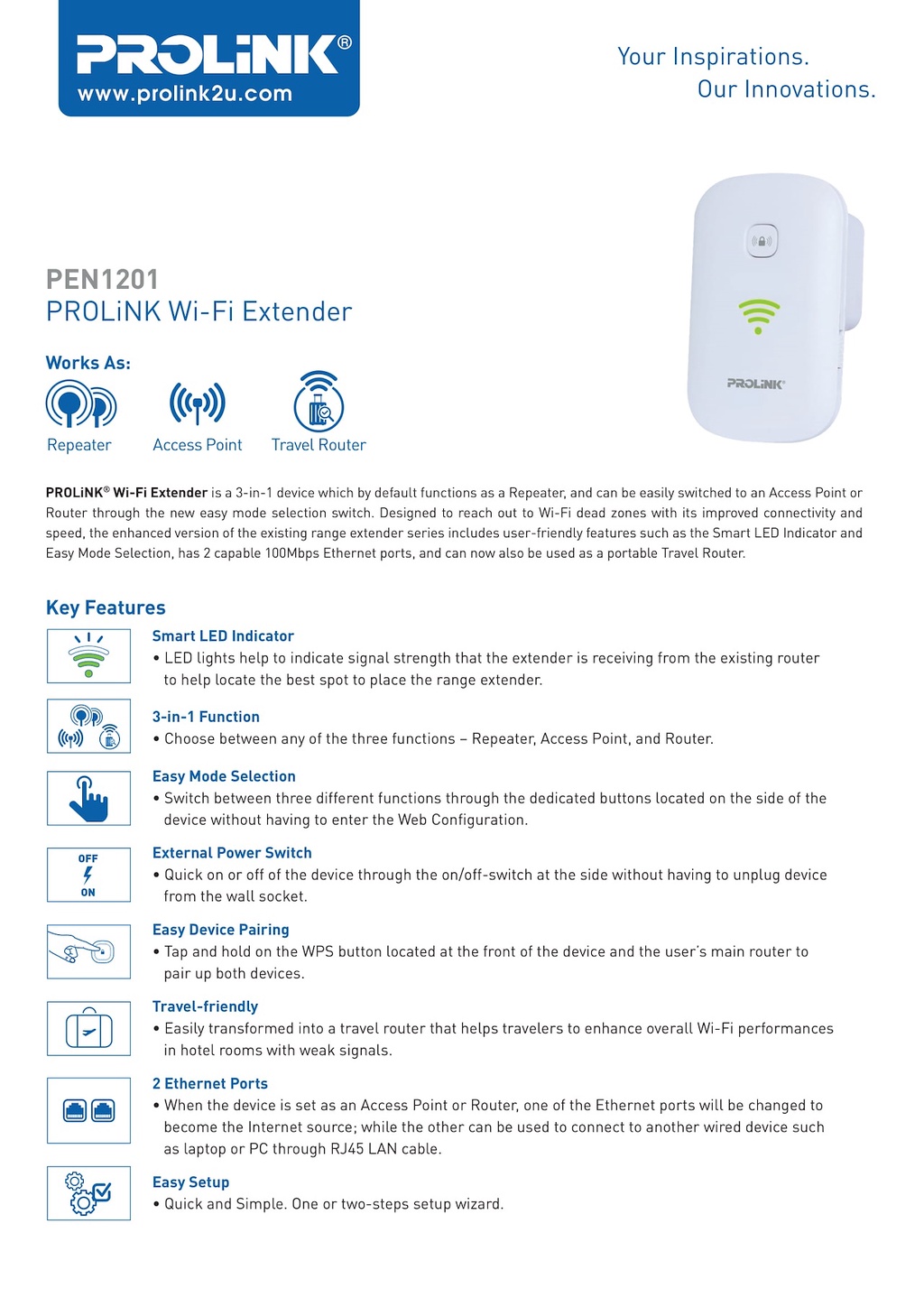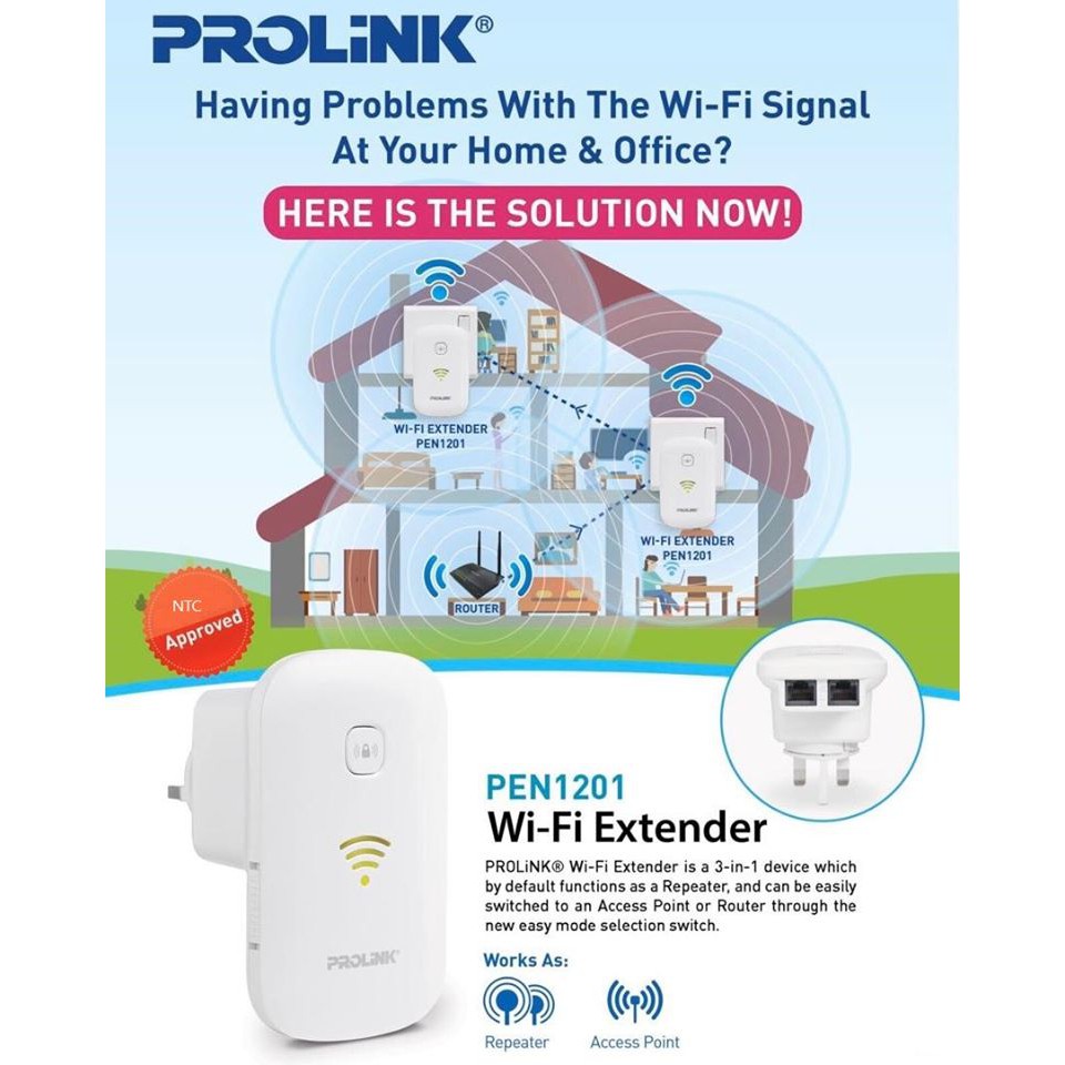 Prolink® Wi-Fi Extender is a 3-in-1 device