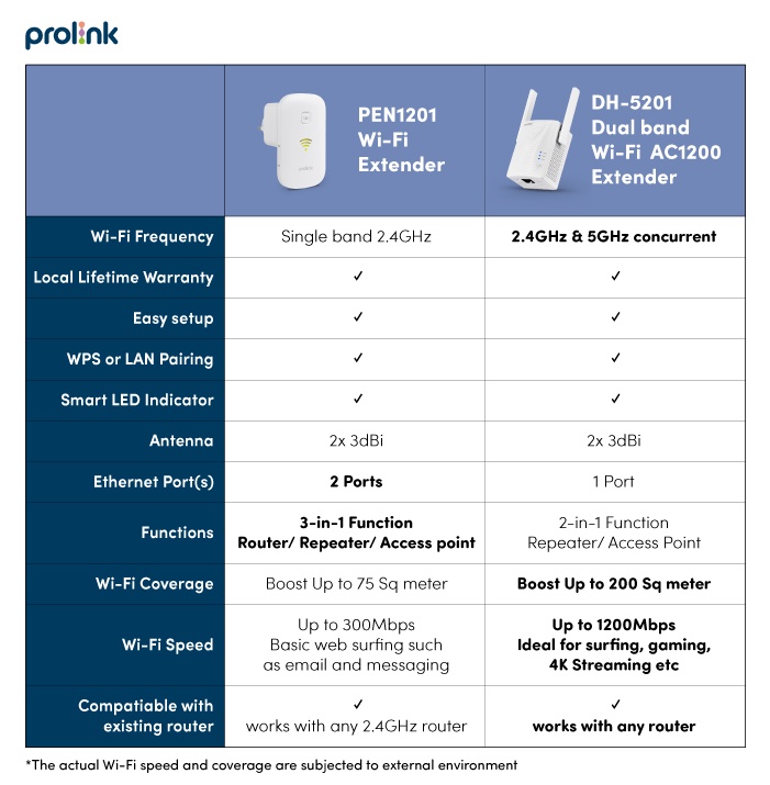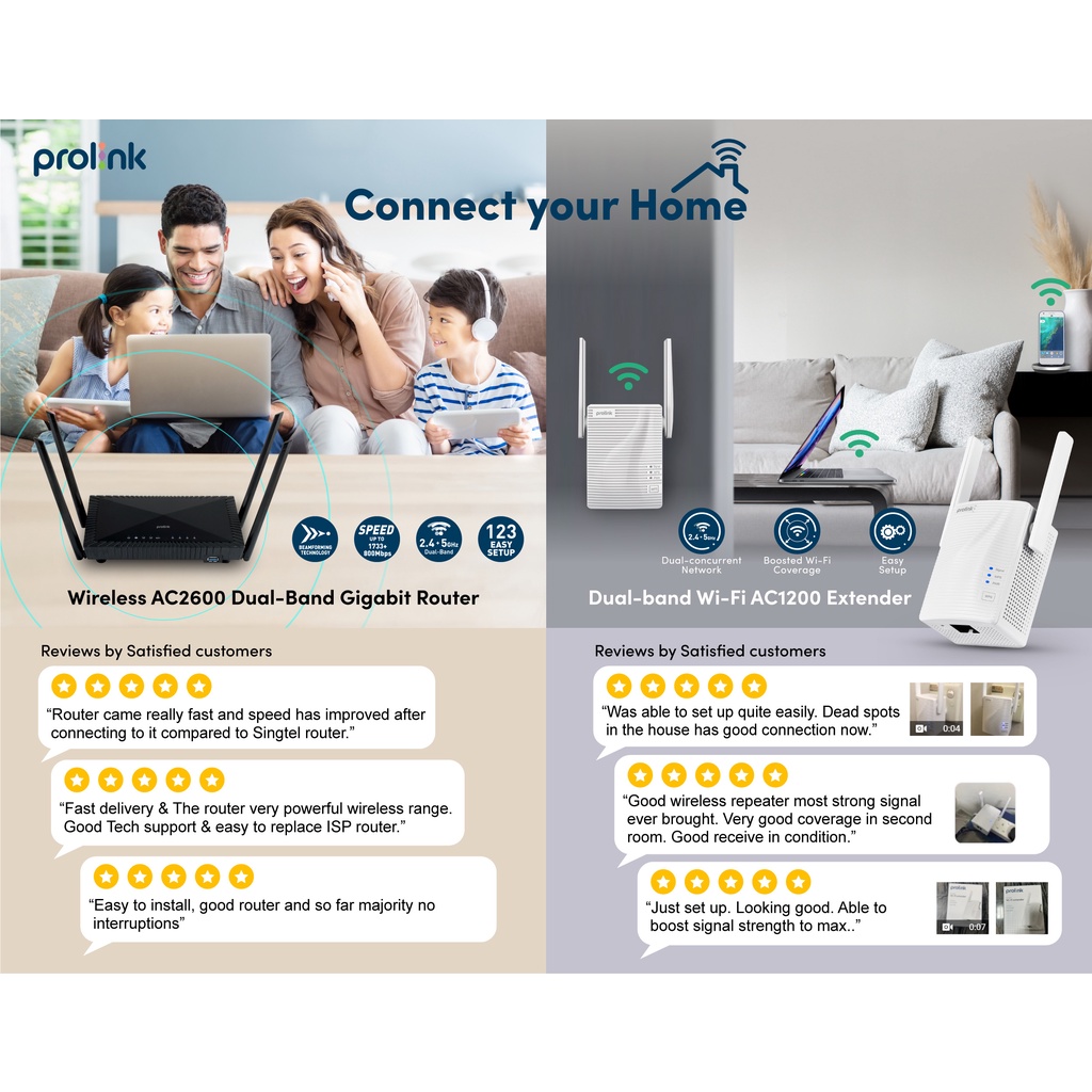 (NEW LAUNCH) Prolink Dual-band Wi-Fi AC1200 Extender - Works with any router (5Ghz and 2.4Ghz router)