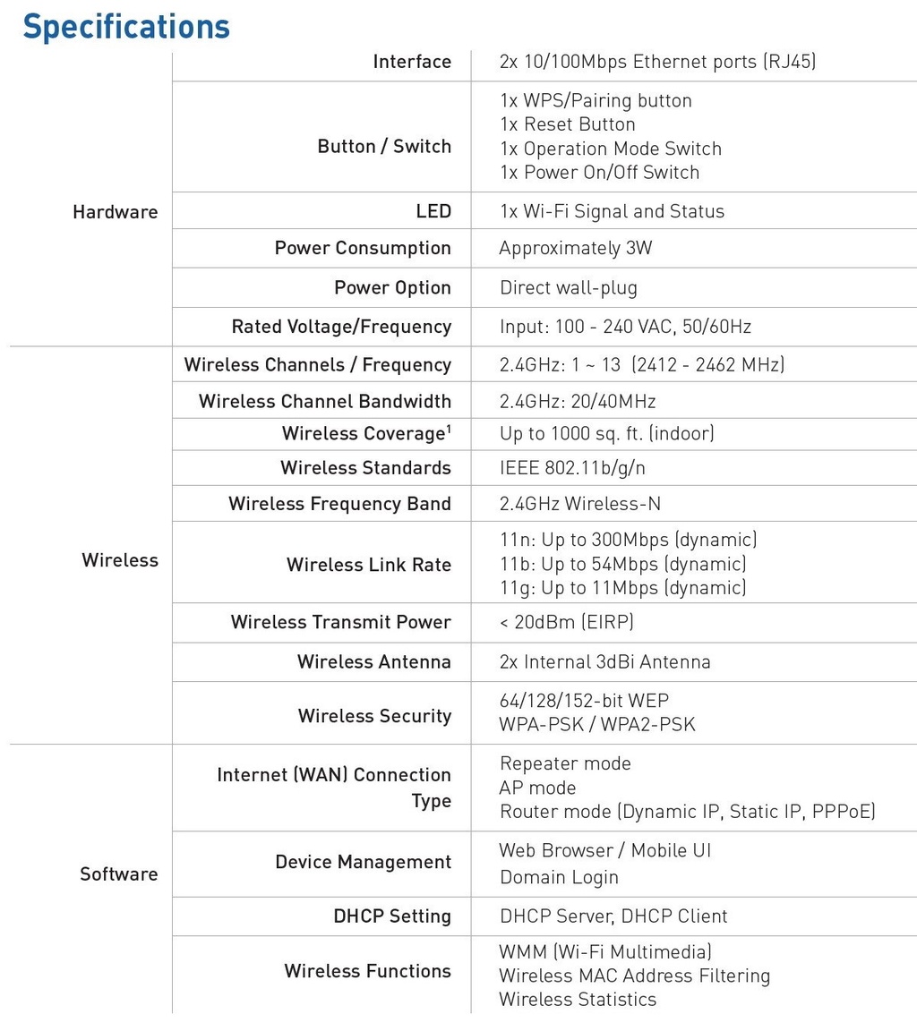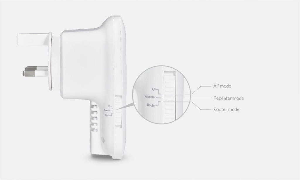 The 3-in-1 Extender which by default functions as a Repeater, and can be easily switched to an Access Point or Router through the new easy mode selection switch. Designed to reach out to Wi-Fi dead zones with its improved connectivity and speed, the enhanced version of the existing range extender series includes user-friendly features such as the Smart LED Indicator and Easy Mode Selection, has 2 capable 100Mbps Ethernet ports, and can now also be used as a portable Travel Router.