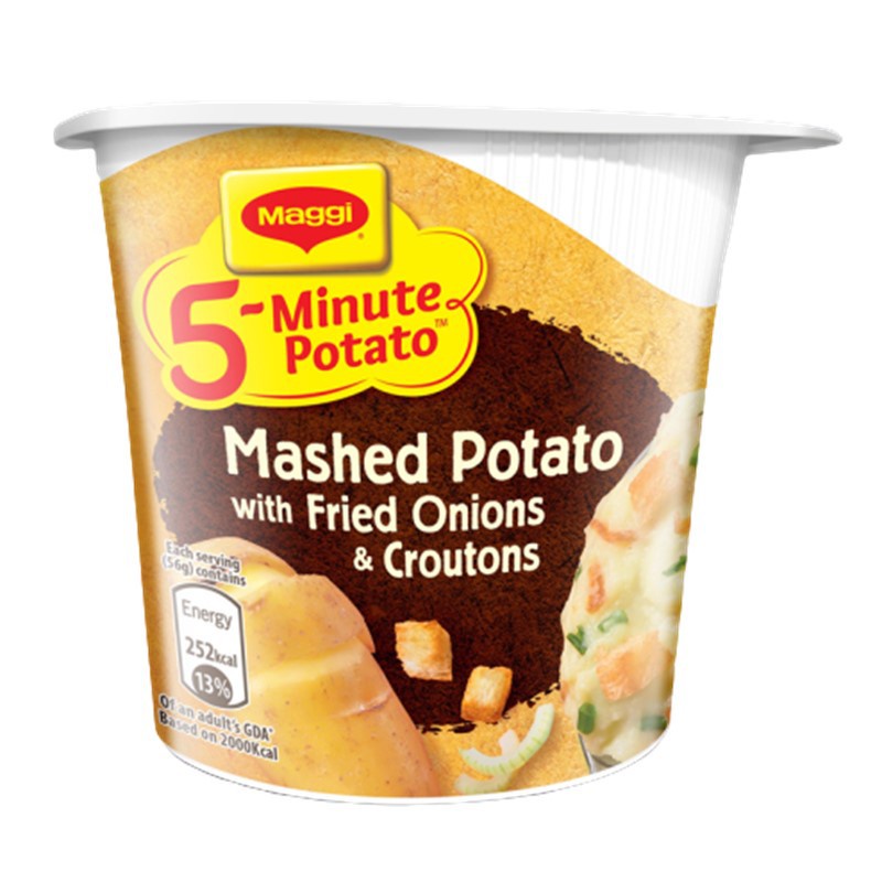 Smooth and creamy mashed potato, mixed with aromatic roasted onions and crunchy croutons. MAGGI® 5-Minute Mashed Potato, a quick and delicious snack for your enjoyment!