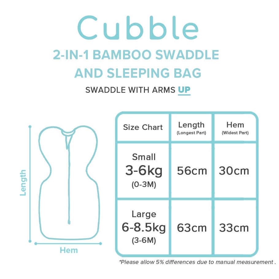 Cubble Baby Bamboo Swaddle and Sleeping Bag - Arms Up Position Baby Sleepsack 0-3M/3-6M (6 Designs)