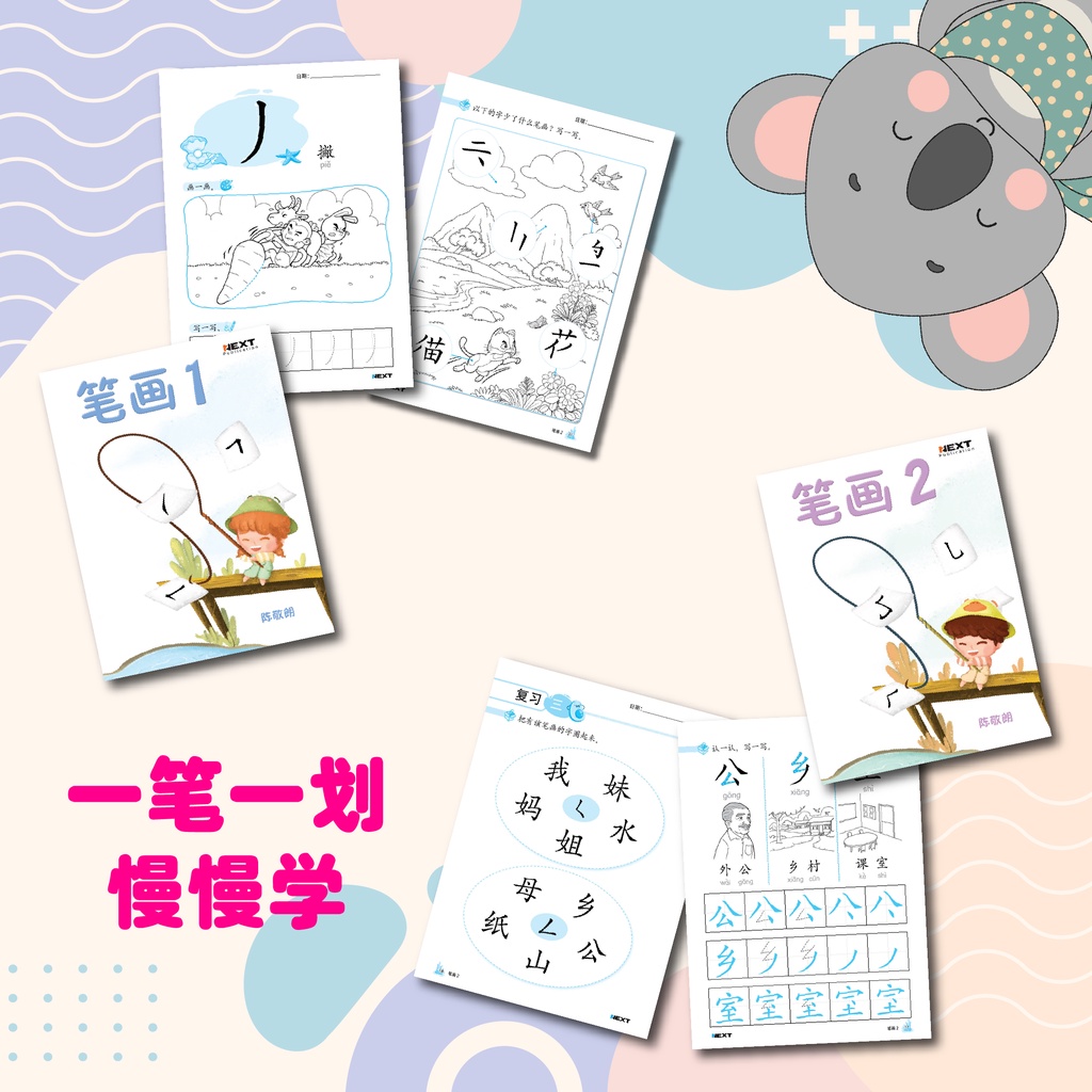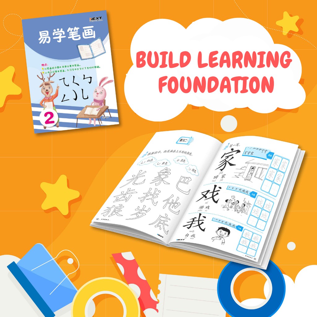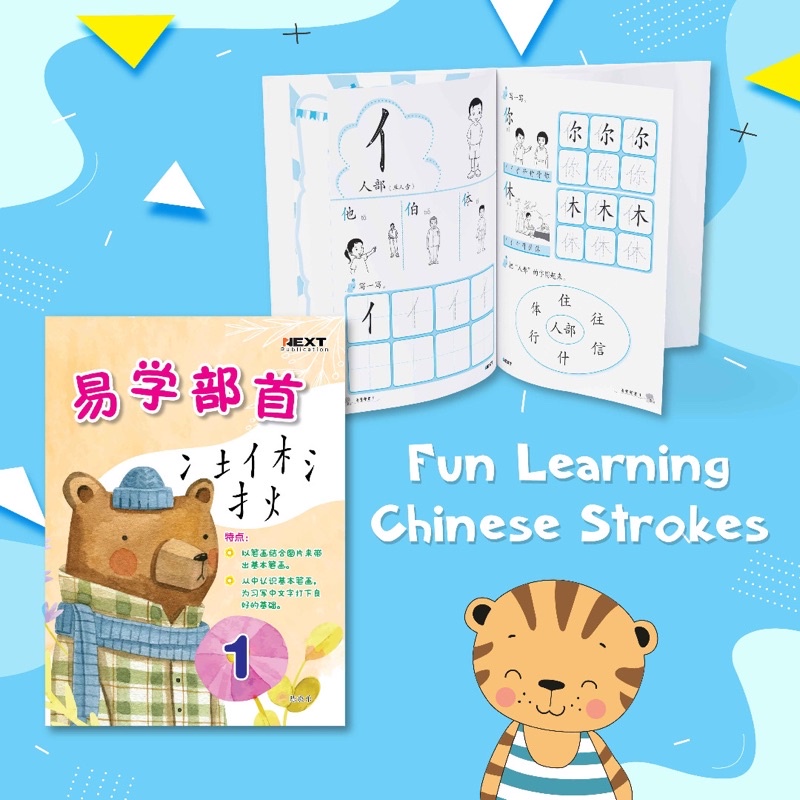 Yi Xue Bi Hua / Yi Xue Bu Shou / Bi Hua series are specially designed to help children develop essential skills in learning to write basic strokes of Chinese characters. It serves as a foundation for children in learning Chinese.