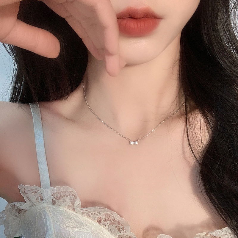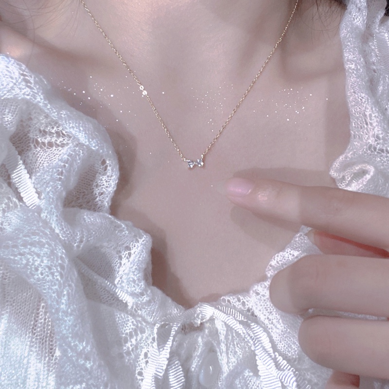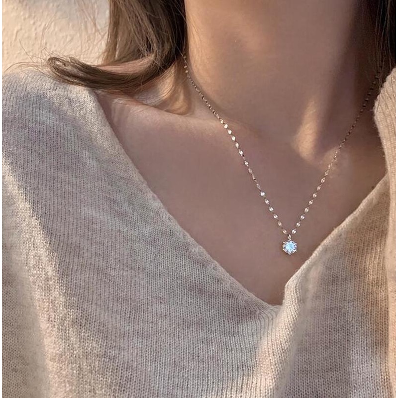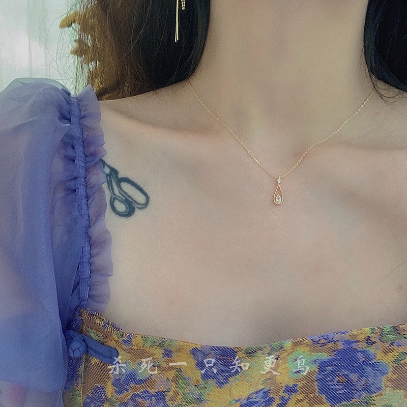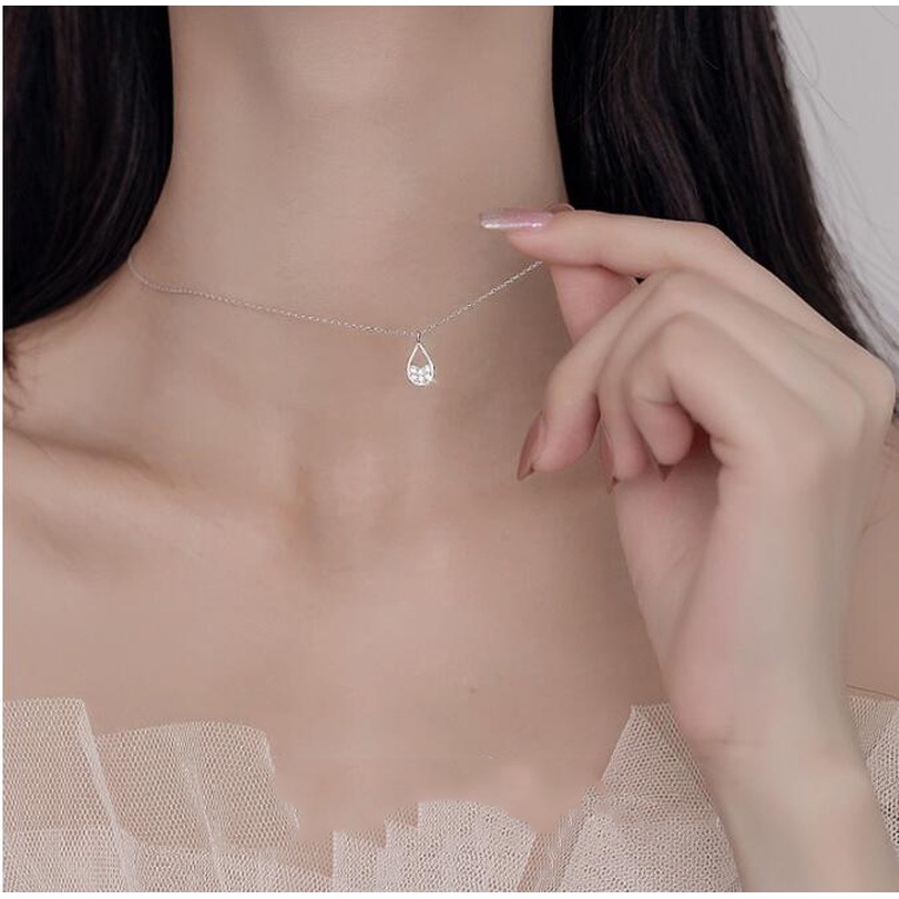Roselife Korean Zirconia Heart Water Drop Leaves Wing Pendant Necklace for Women Shining Summer Chain Necklace Jewelry