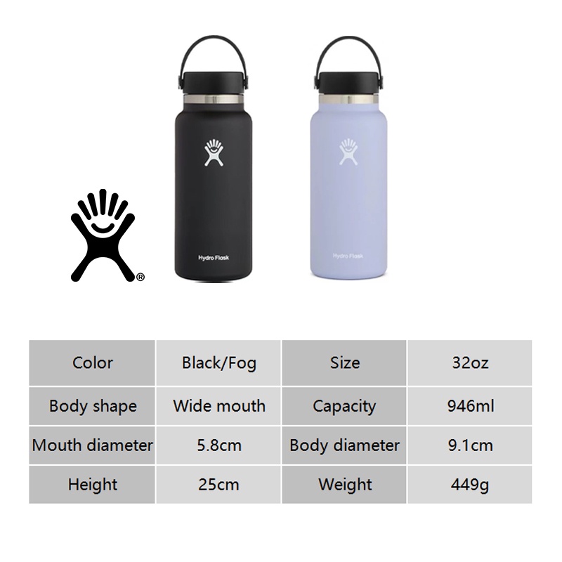 Hydroflask Hydro Water Bottle 32oz Large Capacity Stainless Steel Vacuum Bottle With Handle Lid Sports Portable Kettle