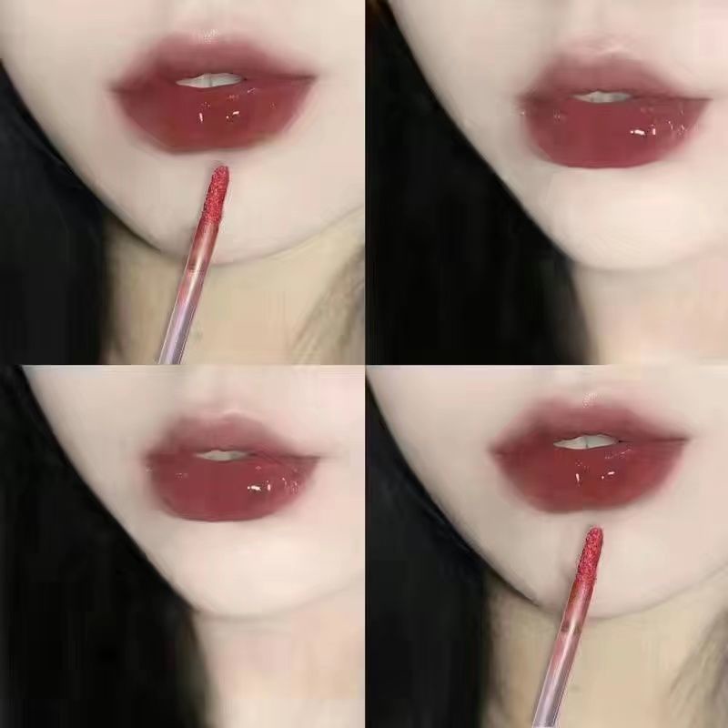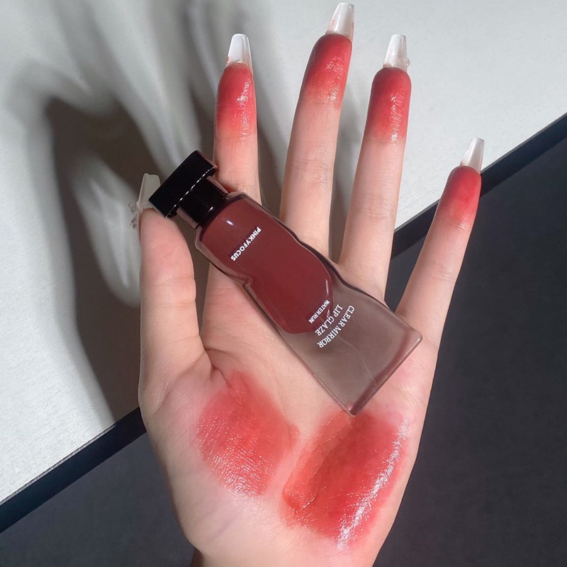 PinkyFocus black mirror light lip glaze mirror water light long-lasting not easy to fade into film transparent ice cube lip mud woman sawu